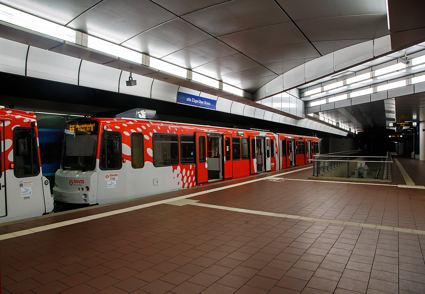Zwei gekuppelte vierteilige ET 423 (geführt von 423 023-9) der S-Bahn Köln (betrieben durch die DB Regio AG – NRW) haben am 20 Februar 2017 (22.58 Uhr), als S 12 von Au/Sieg nach Köln-Ehrenfeld den Bahnhof Siegburg/Bonn erreicht.