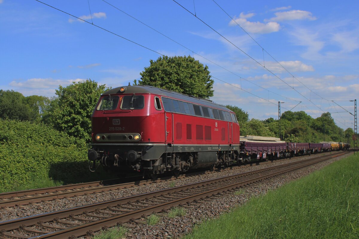 Die für Steilstrecken zugelassenen 215 086-0 (eigentlich 225 086-8 / 92 80 1225 086-8 D-EVG) der RE - Rheinische Eisenbahn, mit einem Sonderzug am 22 April 2017 in Obererbach (Westerwald) auf der Oberwesterwaldbahn. Am Zugschluss schiebt noch die 52 4867 / 052 867-3 der Historische Eisenbahn Frankfurt e.V. (HED) nach. Aber noch ca. 5 km wird im Bahnhof Altenkirchen Kopfgemacht, so wird die 52er Dampflok dann Zuglok und es geht weiter in Richtung Limburg an der Lahn.