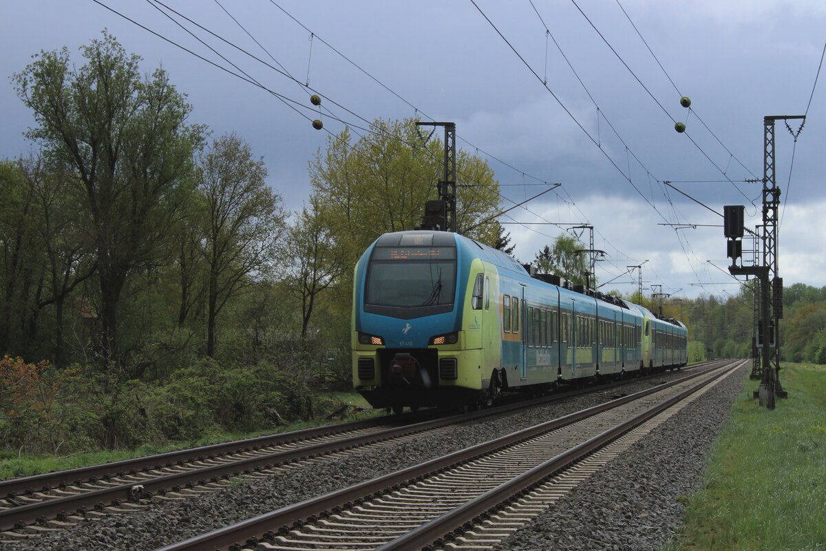 Der hintere Zug (hier im Bild links im Vordergrund), ET 25 2204 (94 80 1429 011-8 D-VIASR etc.) fährt, nach dem Flügeln in Wesel, dann nach Bocholt.