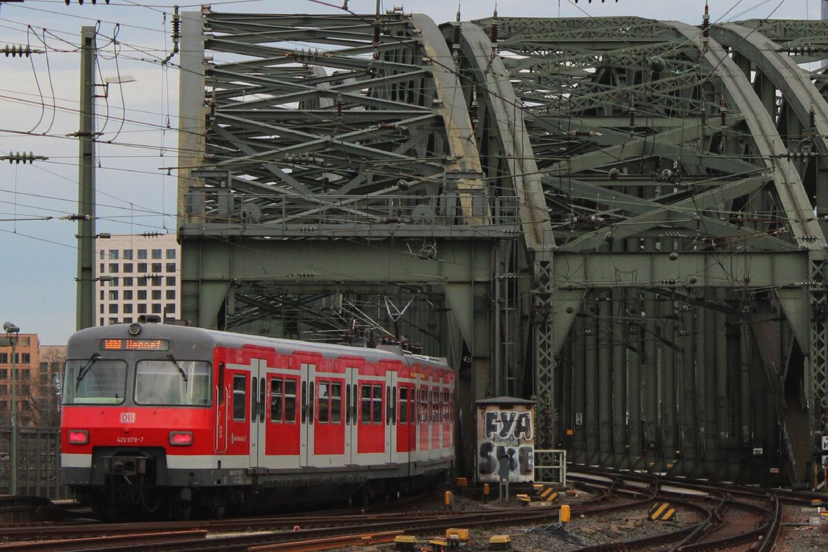 Zwei gekuppelte ET 420 (420 926-8 und 420 987-0) der S-Bahn Köln, fahren am 01.06.2019 vom Bahnhof Köln Messe/Deutz als S 19 weiter in Richtung Hennef (Sieg).