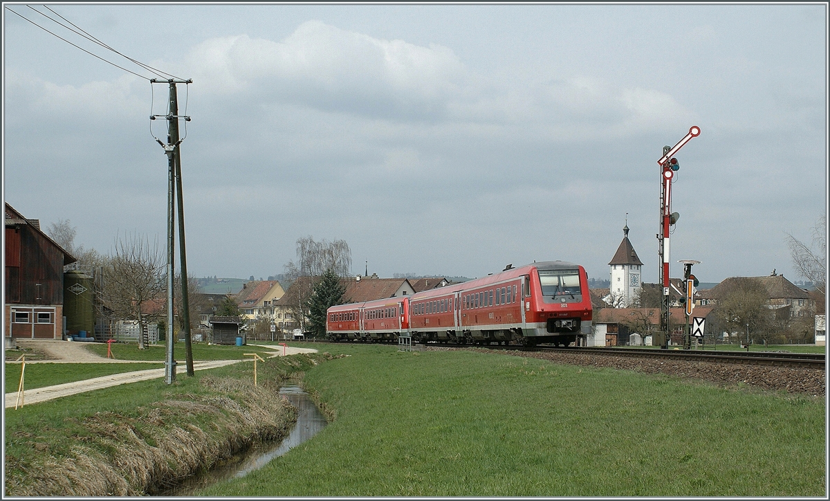 Ein DB 611 auf der Fahrt durchs Klettgau bei Hallau.