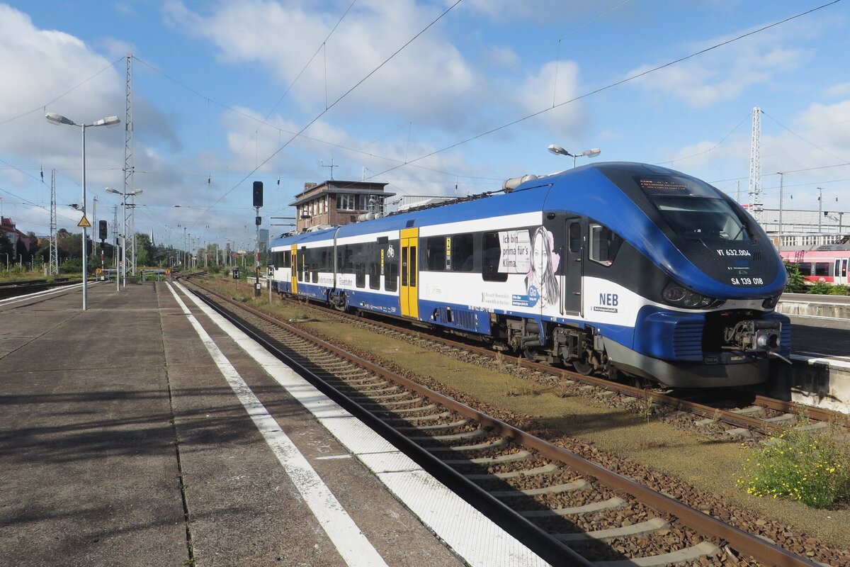 Der 632 033 / 632 533 ein Dieseltriebzug vom Typ Pesa Link II der DB Regio Mitte, fährt als RB 61 „Dreieichbahn“, am 17 April 2023 vom Bahnhof Frankfurt am Main Süd in Richtung Hauptbahnhof.