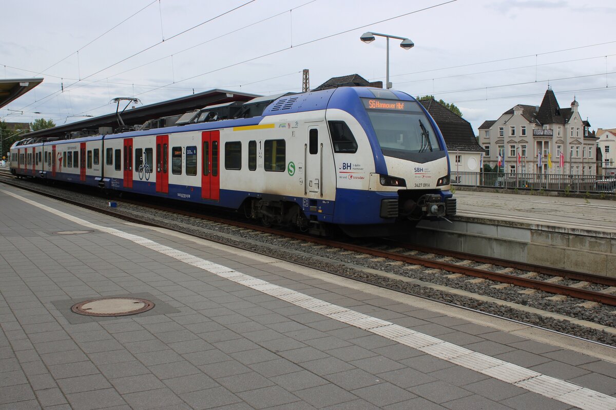 Hannoverischer S-Bahn 3427 091 steht am grauen 21 September 2025 abfahrtbereit in Celle.