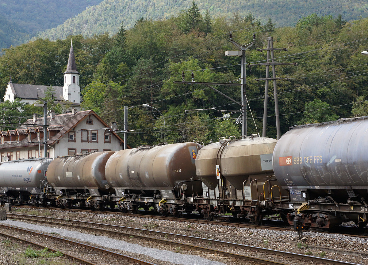 Es ist ein Neubau-Kesselwagen vom polnischen Hersteller CHEMET S.A. in Tarnowskie Góry (Tarnowitz).