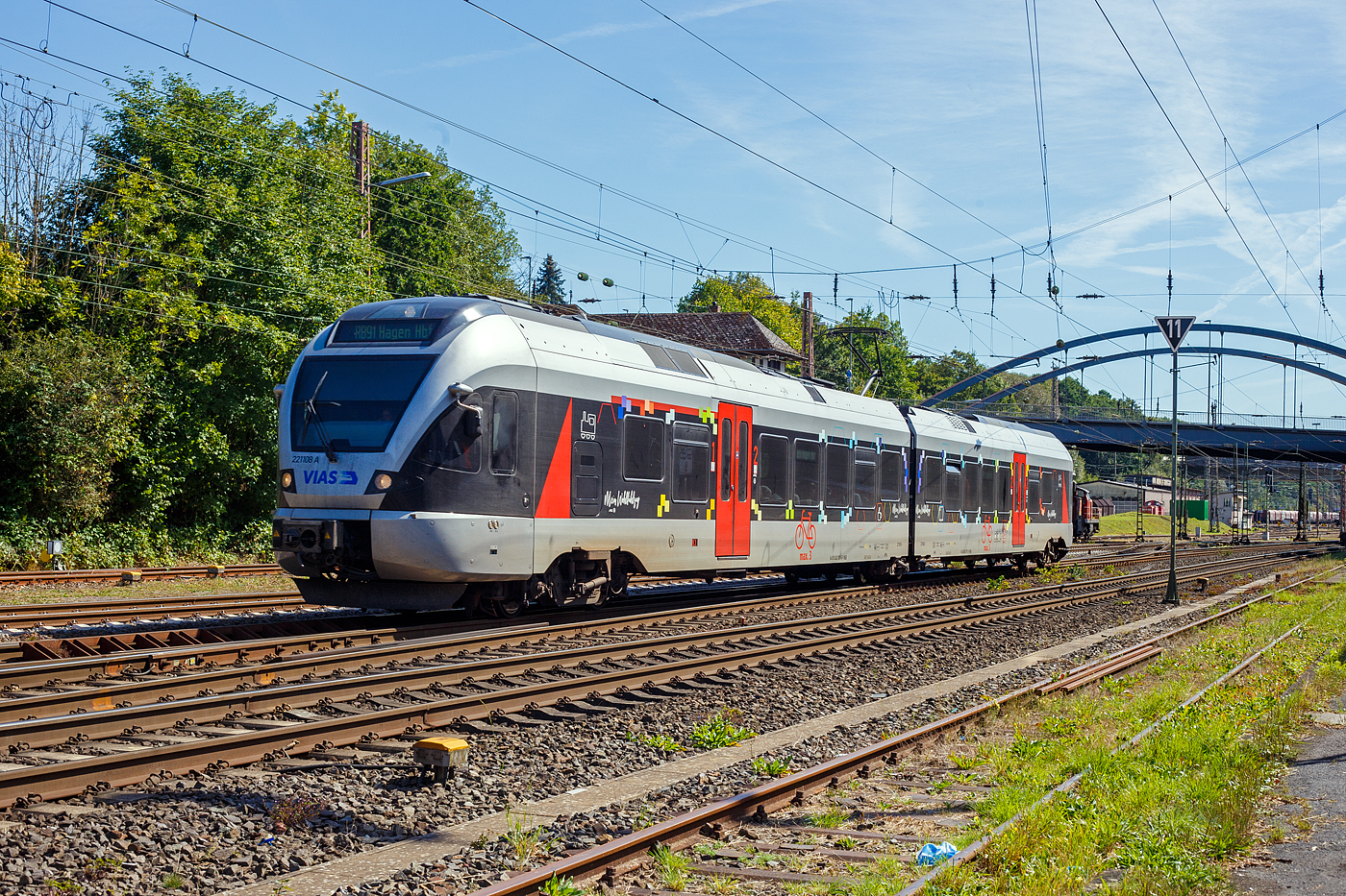 Der VT 502 (95 80 1648 102-9 D-HEB / 95 80 1648 602-8 D-HEB) ein Alstom Coradia LINT 41 der neuen Generation der HLB (Hessische Landesbahn GmbH) fährt am 05 September 2024, als RB 90 "Westerwald-Sieg-Bahn" (Altenkirchen/Westerwald - Au/Sieg - Betzdorf/Sieg – Siegen – Kreuztal), durch Siegen-Geisweid und erreicht bald den Bahnhof Siegen-Geisweid.