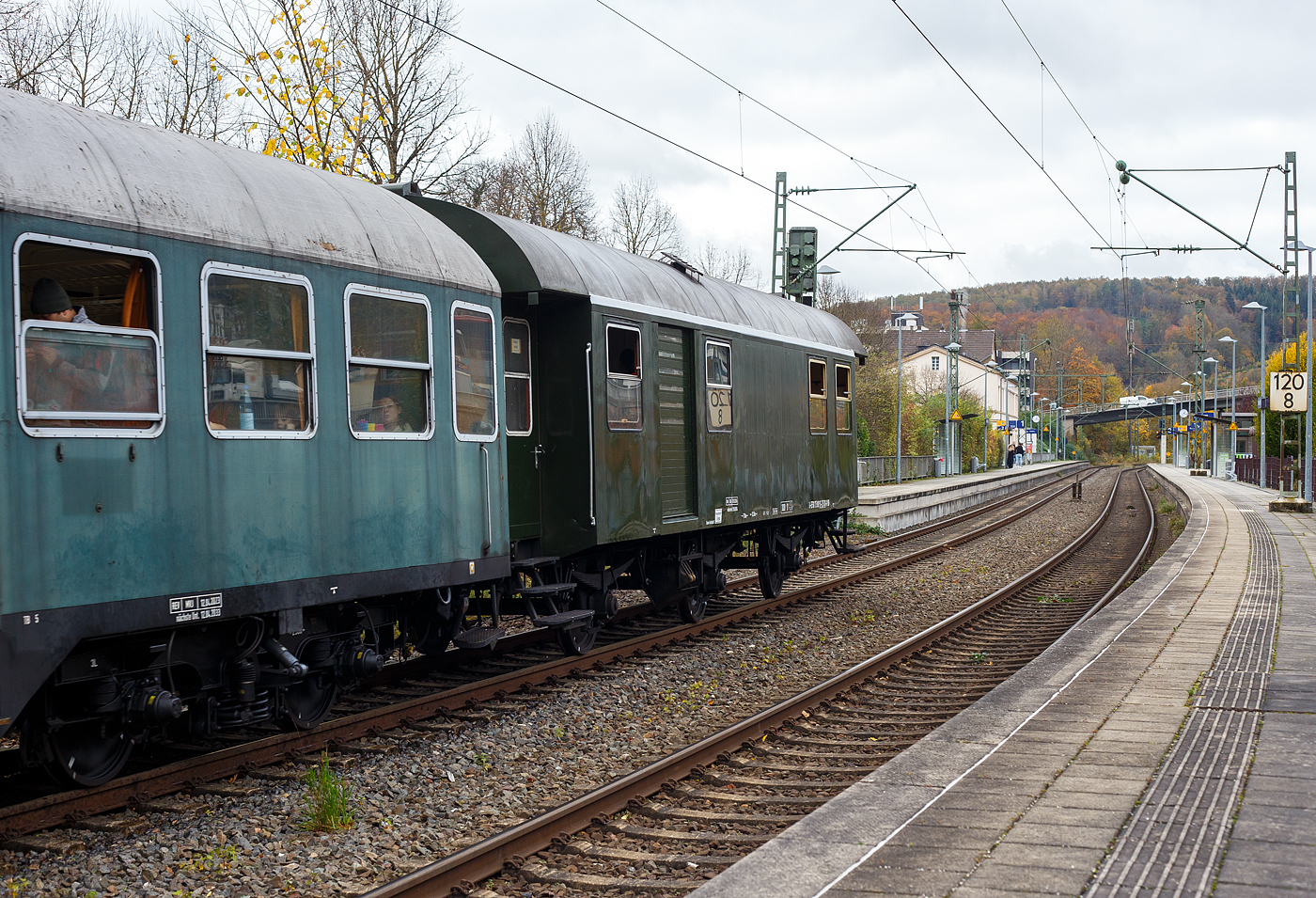 Der ehemalige Bahnpostwagen der Deutschen Bundespost (DBP), 51 80 00-95 120-3, der Gattung Post mrz ***, am 25.03.2017 im DB Museum Koblenz-Lützel.