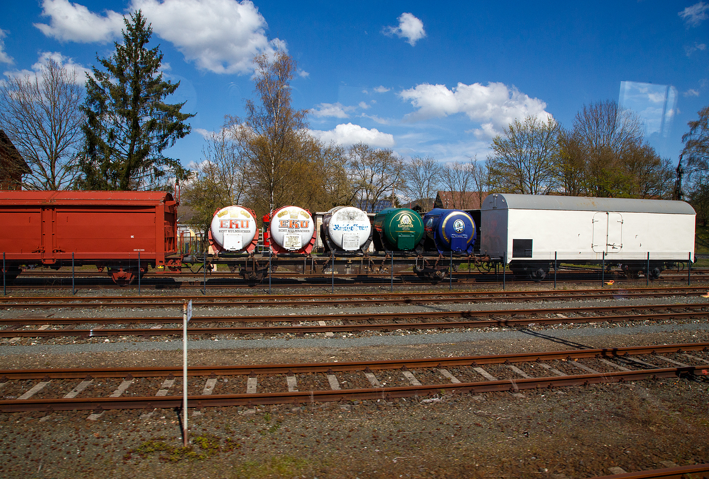 Der zweiachsige schnelllaufende gedeckte Güterwagen mit Bremserhaus EUROP / DB 299 858 (49 80 120 0 176-0 D-DGEG) der Gattung Gmhs 39, am 30 April 2017 im Eisenbahnmuseum Bochum-Dahlhausen.