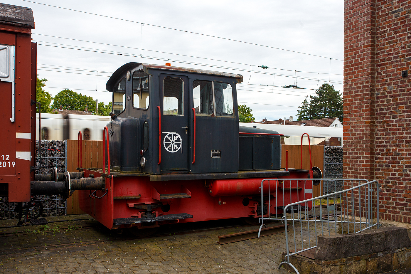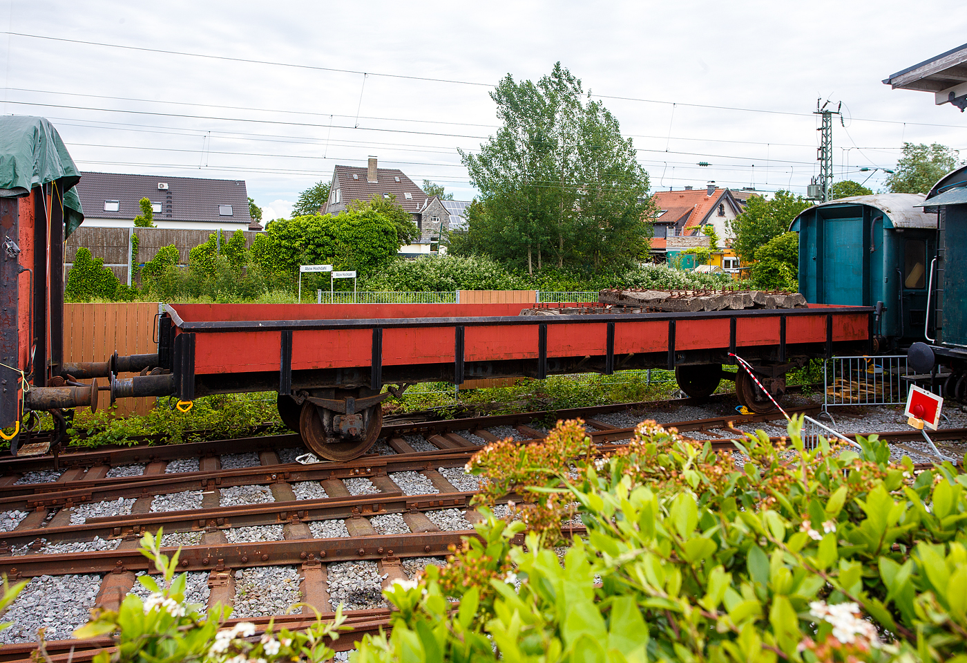 Detailbild von einem der beiden Drehgestelle, der Bauart Görlitz II, des restaurierten historischen DRG Meßwagen für Schwingungsuntersuchungen Lokmotivversuchsabteilung Grunewald, (Berlin) Bln 700 587, vom berühmten Lokomotiv- Versuchsamtes (LVA) in Berlin Grunewald, am 26 Mai 2024 beim Lokschuppen Hochdahl vom Eisenbahn- und Heimatmuseum Erkrath-Hochdahl e.V..