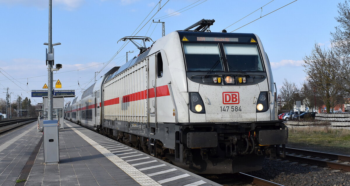 DB Fernverkehr AG [D] mit ihrer "147 566" [NVR-Nummer: 91 80 6147 566-4 D-DB] und dem IC 2174 Richtung Rostock Hbf. am 23.03.26 Einfahrt im Bahnhof Elsterwerda.