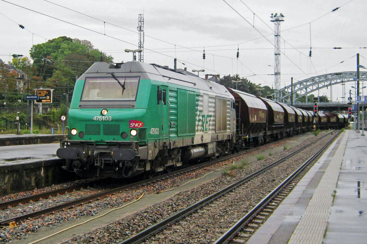 Die Akiem BB 75 326 (92 87 0075 326-4 F-AKIEM), ex Akiem 75026, ex Fret SNCF 475026, ist am 24.03.2015 bei Muhlhouse (Mülhausen) abgestellt. Die Aufnahme konnte ich aus unserem Zug (TGV) heraus machen.