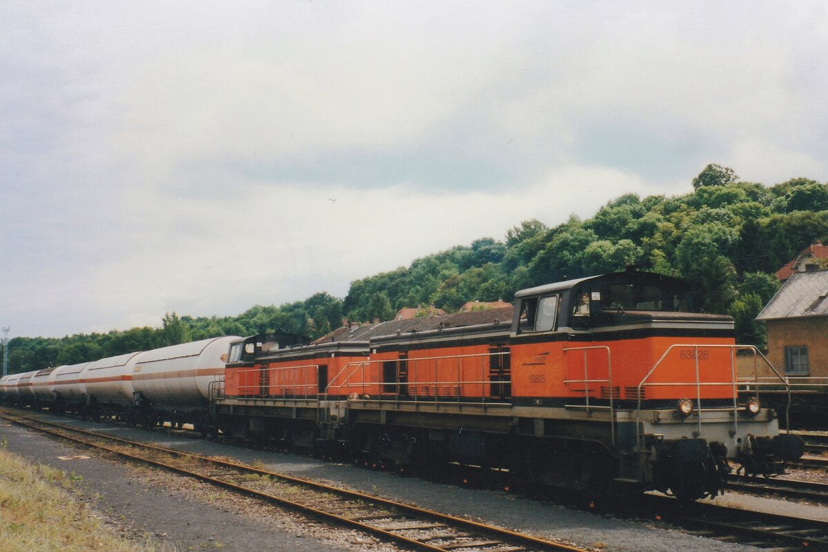 Gaskesselwagenzug mit 63828 steht am 17 Mai 2004 in Sarreguemines.