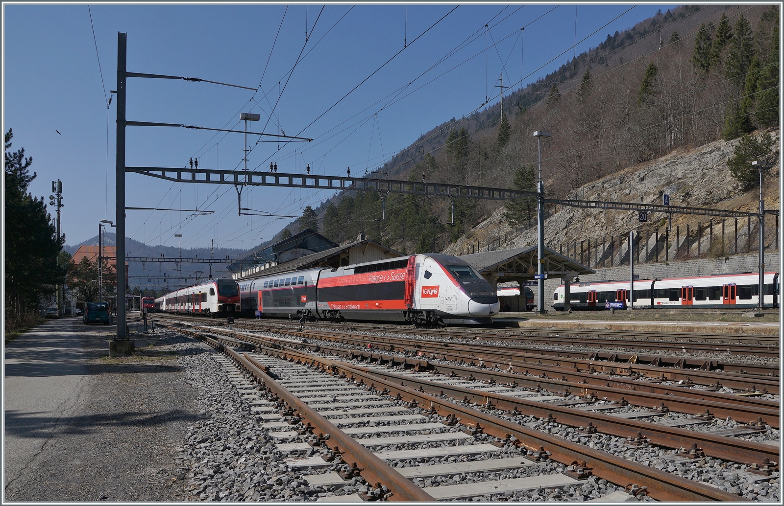 SBB RABe 502 auf Testfahrt und TGV Lyria in Lausanne.
