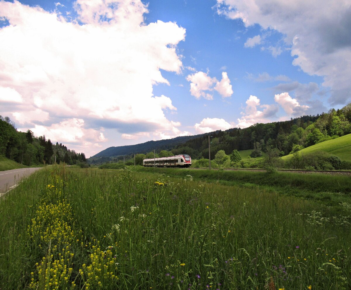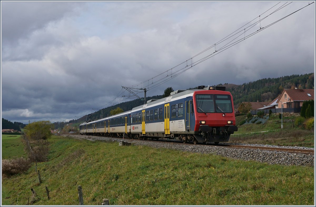 Der SBB NPZ wird in Frase für die Rückfahrt (10:53) nach Neuchâtel vorbereitet und besteht aus folgenden Fahrzeugen: RBDe 562 004-2, AB 50 85 30-603-1, B 50 85 20-35 600-9, B 50 85 20-35 602-5 und dem Bt 50 85 29-35 952-5 (Schluss -> Spitze)