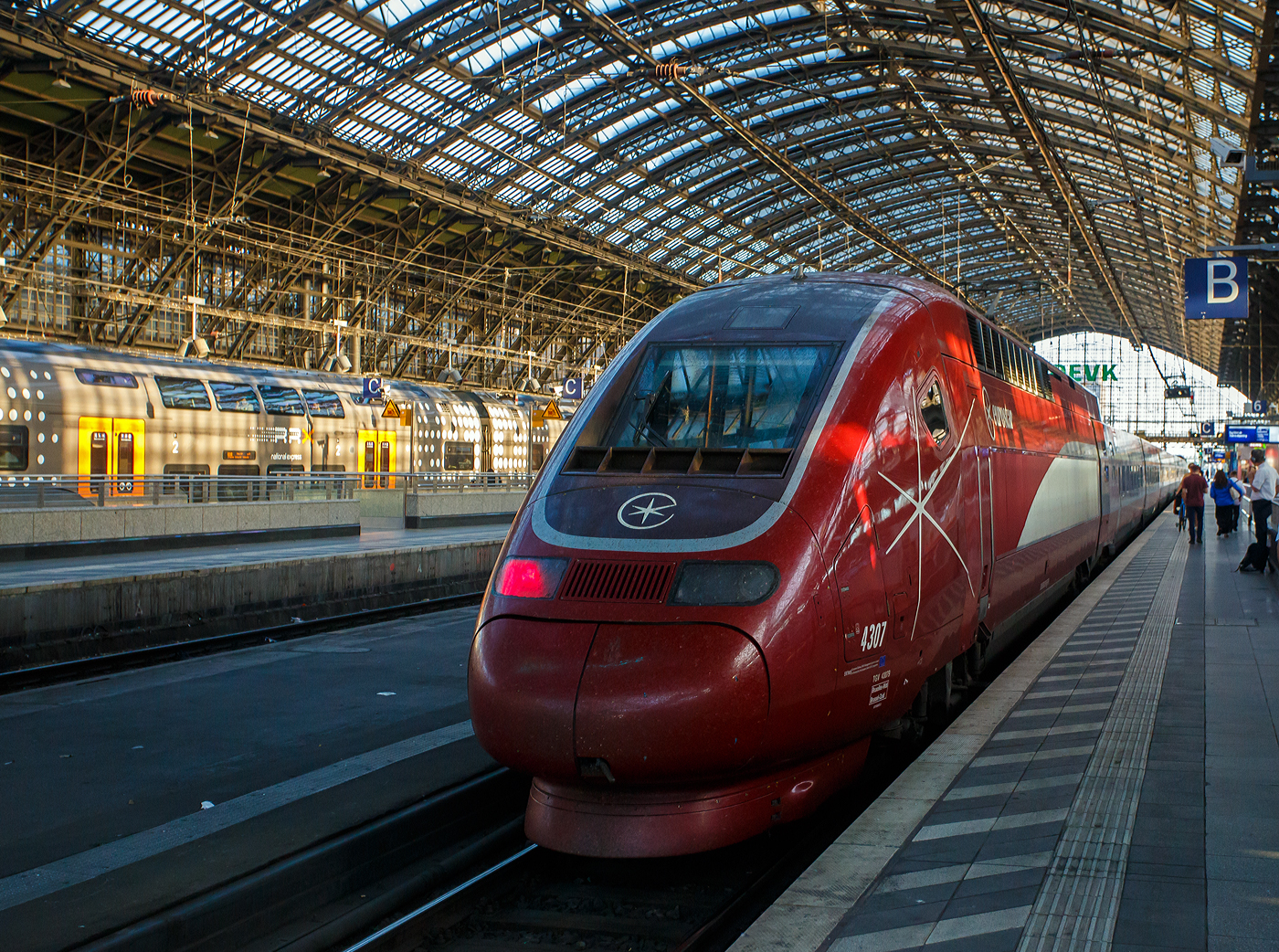 Der Eurostar PBKA 4307 (TGV 43070/43079), ex Thalys PBKA, steht am 01 Juli 2025 im Hauptbahnhof Köln, als Eurostar EST 9414 nach Paris Nord (Paris Gare du Nord), zur Abfahrt bereit.