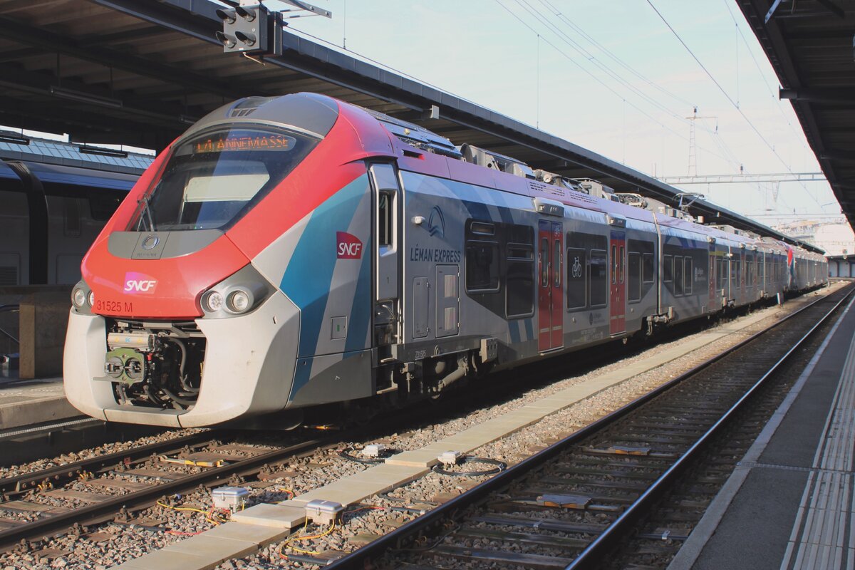 Z-31537 steht am 31 dezember 2023 in Geneve mit ein Schnellzug nach Bellegarde.