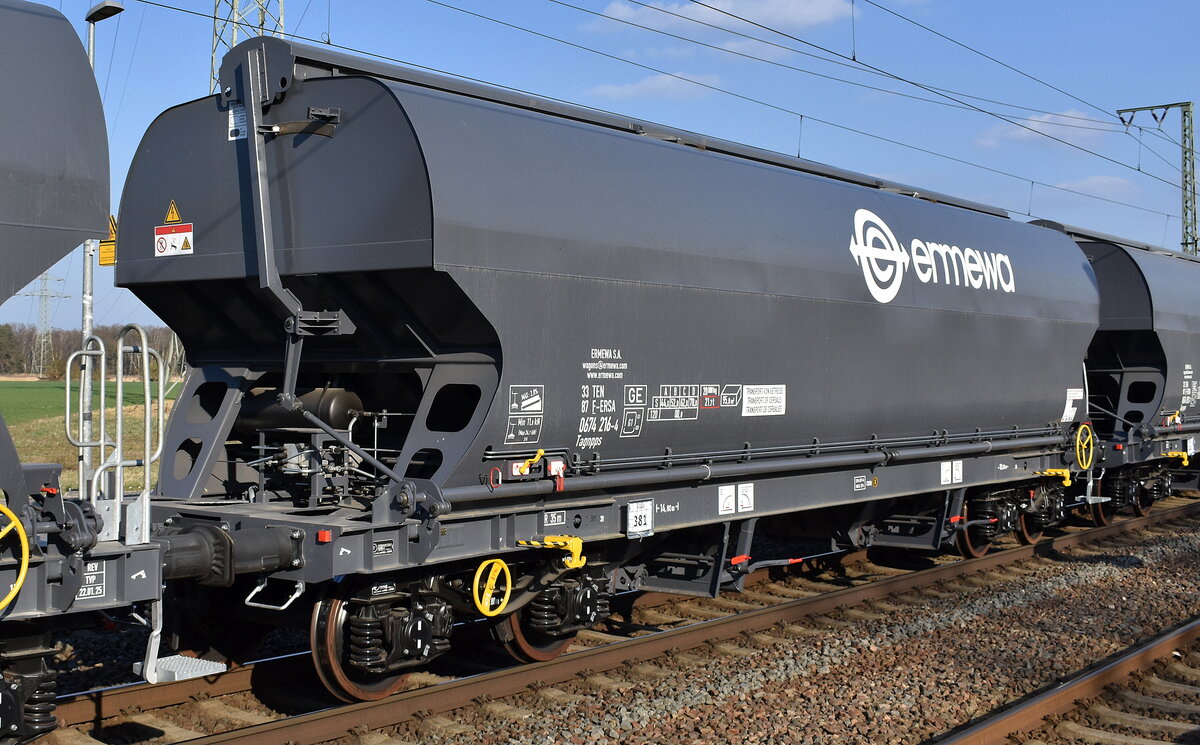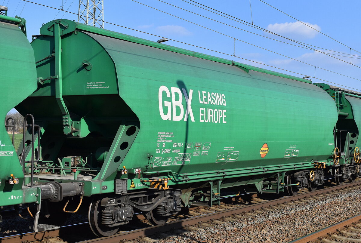 TRIANGULA Logistik GmbH, Gelenau mit der angemieteten MAED "155 183-7" [NVR-Nummer: 91 80 6155 183-7 D-MAED] und einem Getreidezug am 18.02.25 Höhe Bahnhof Magdeburg-Neustadt.