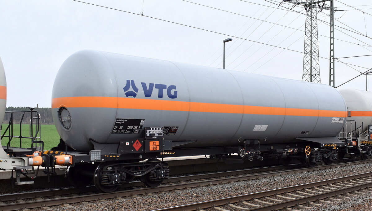 FWK - Fahrzeugwerk Karsdorf GmbH & Co. KG, Karsdorf [D] mit ihrer "185 329-7" [NVR-Nummer: 91 86 0185 329-7 DK-FWK] und einem Kesselwagenzug am 24.03.26 Durchfahrt Bahnhof Roßlau (Elbe).