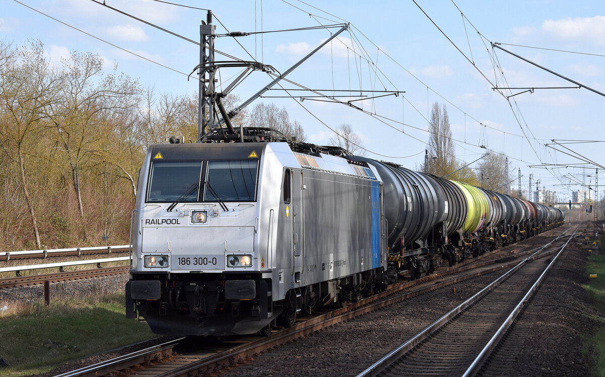 LEG - Leipziger Eisenbahnverkehrsgesellschaft mbH, Leipzig mit ihrer "250 247-4" [NVR-Nummer: 91 80 6155 247-0 D-LEG] + der geleasten nortrail Smartron "192 013" [NVR-Nummer: 91 80 6192 013-1 D-NRAIL] und Kesselwagenzug am Haken am 02.04.26 Höhe Bahnhof Berlin-Hohenschönhausen.