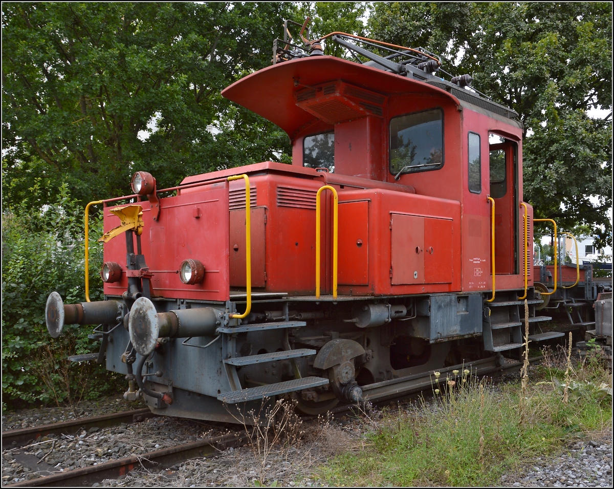 Tem II 295 wartet auf ihre Aufarbeitung. Das Antriebskonzept ist trotz Baujahr 1966 recht modern, denn dieser elektrische Rangiertraktor ist mit einem zusätzlichen Diesel für Fahrten auf Anschlussgleisen ausgestattet. Mit der Ee 923 oder der BR 187 wird das Prinzip wieder aufgegriffen. August 2014. Olli