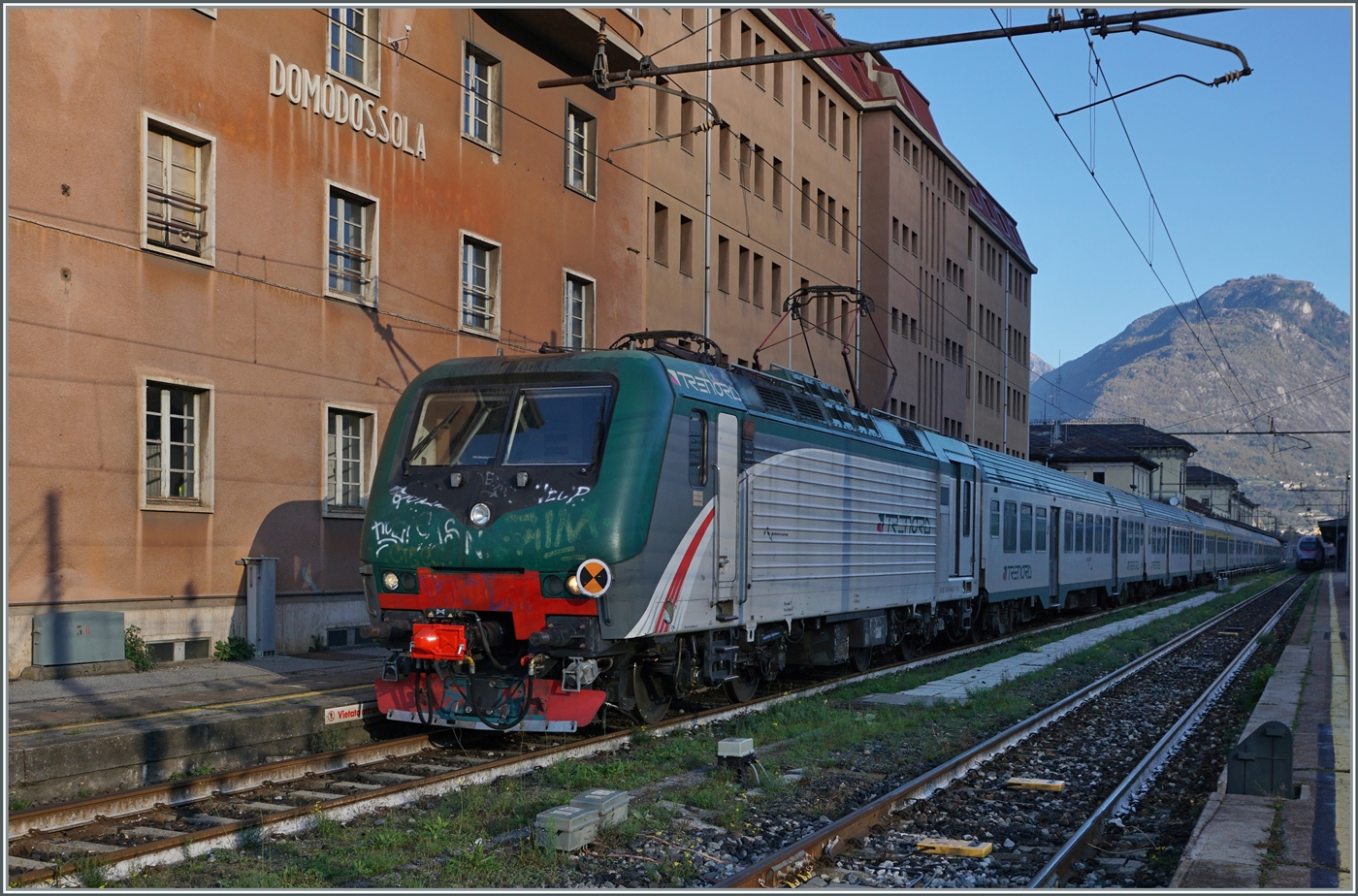 Während auf Gleis 5 in Domodossola ein Trenord ETR 421 von Milano ankommt, steht auf dem Troco ein Trenitalia ME 501 "Minuetto" der um 12:45 nach Novara fahren wird.