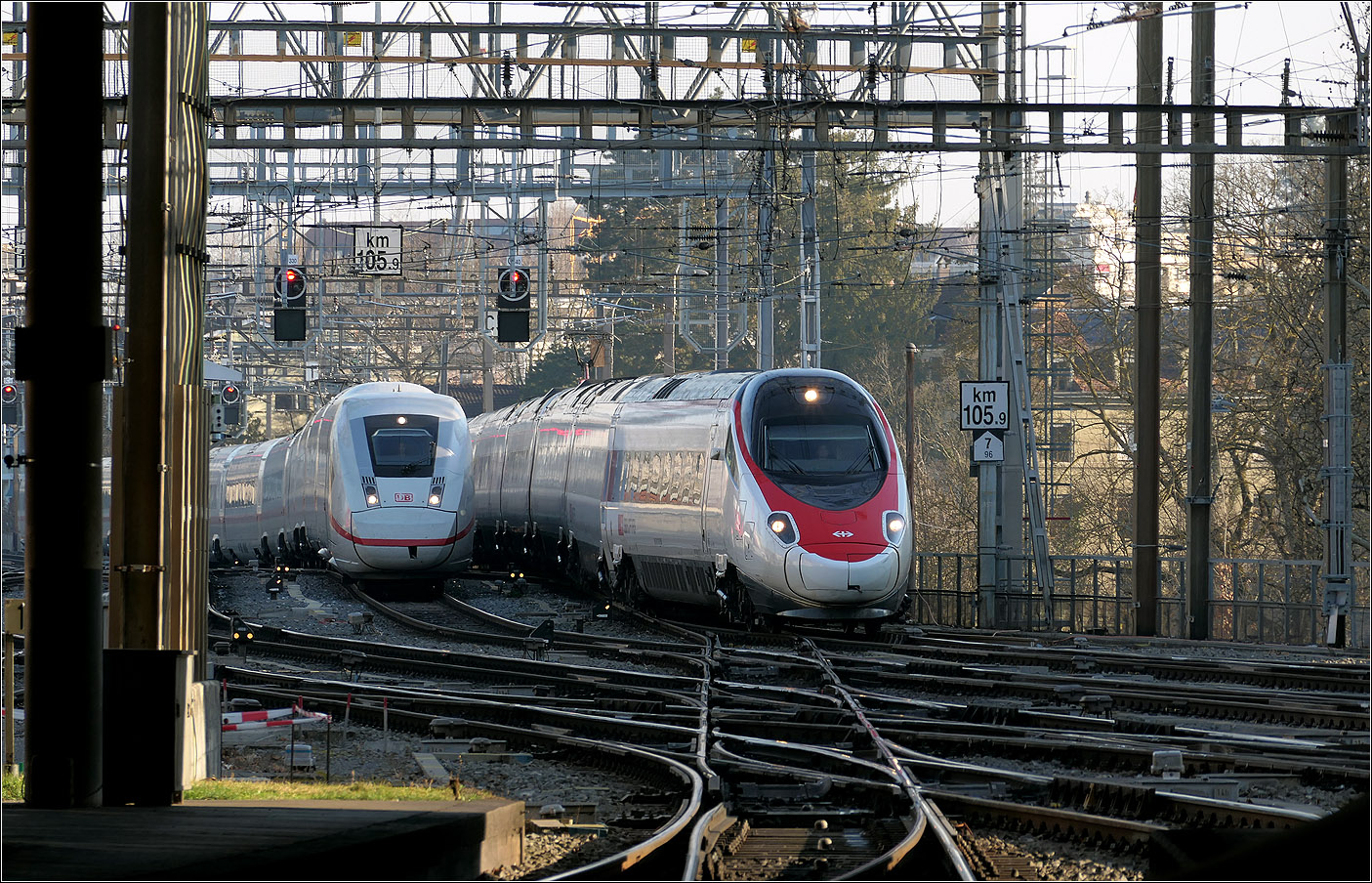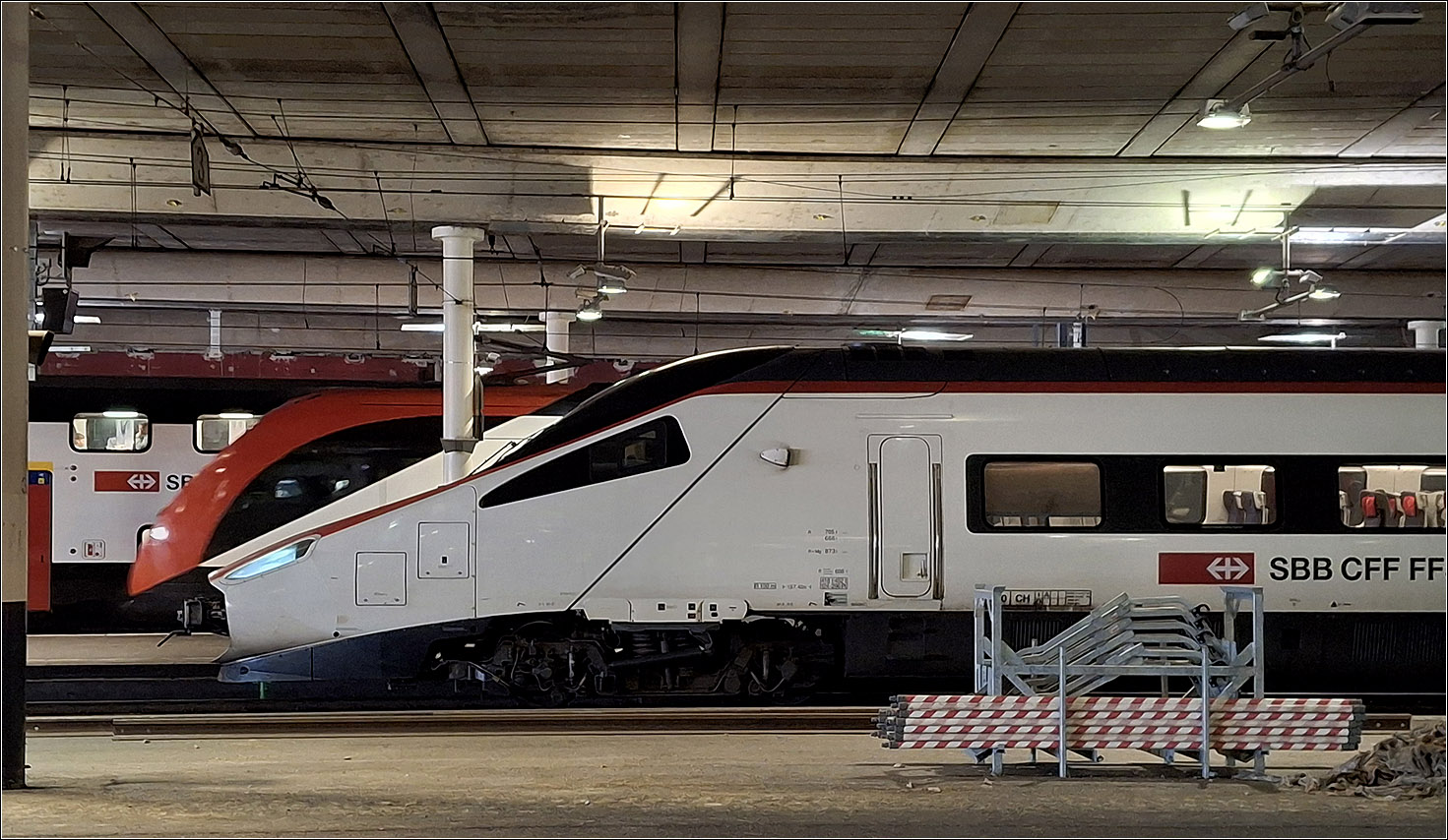 Nicht viel los war am 08.05.2024 in Domodossola. Abgesehen von wenigen FS-ALe 501 nach Novara steht nur dieser SBB-RABe 503 schon Stunden vor der Abfahrt nach Genf am Bahnsteig.