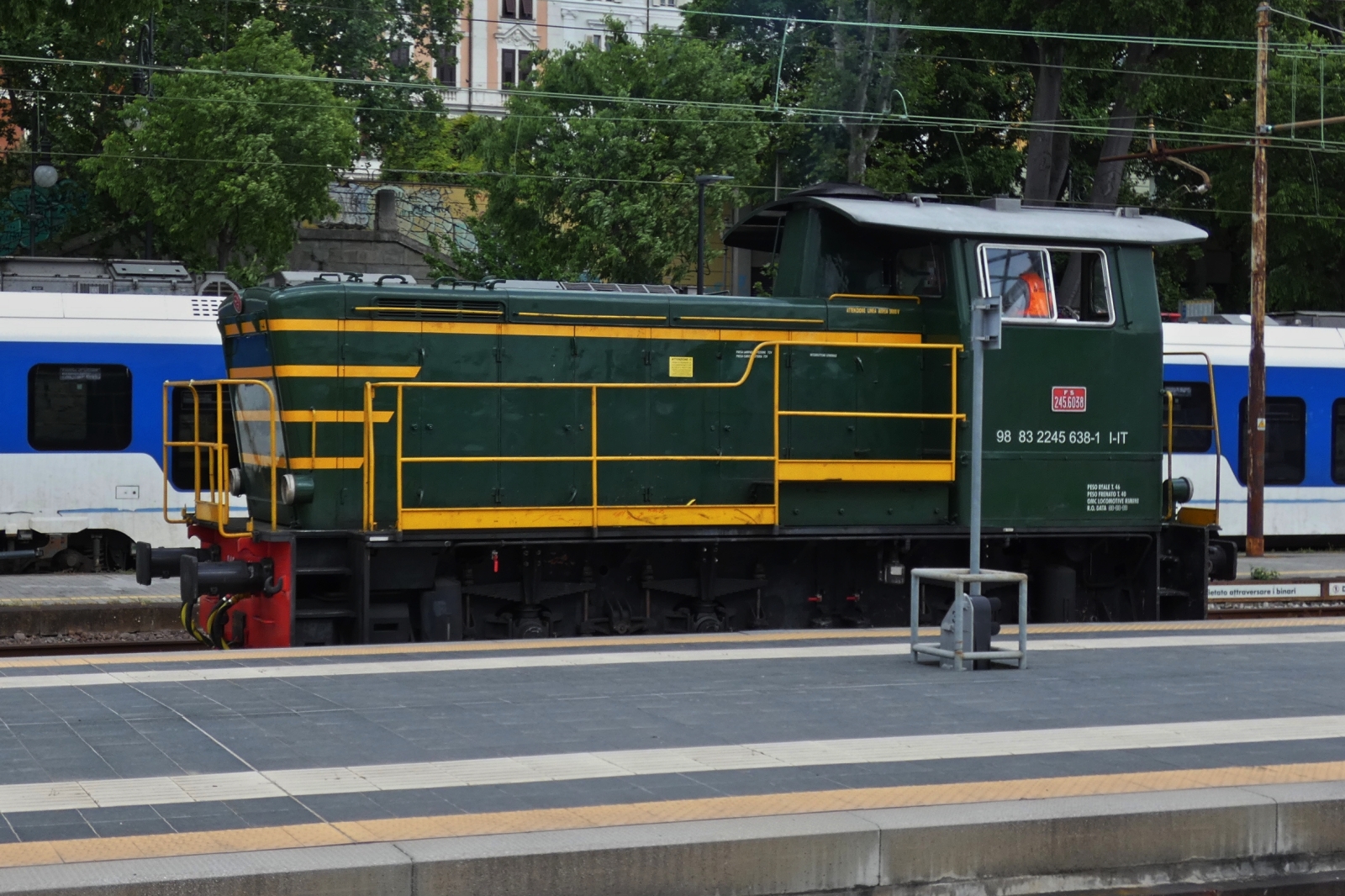 Bei der Einfahrt in Domodossola, durchs Fenster fotografiert: die FS Treniatalia Rangierlok D 245 220x.