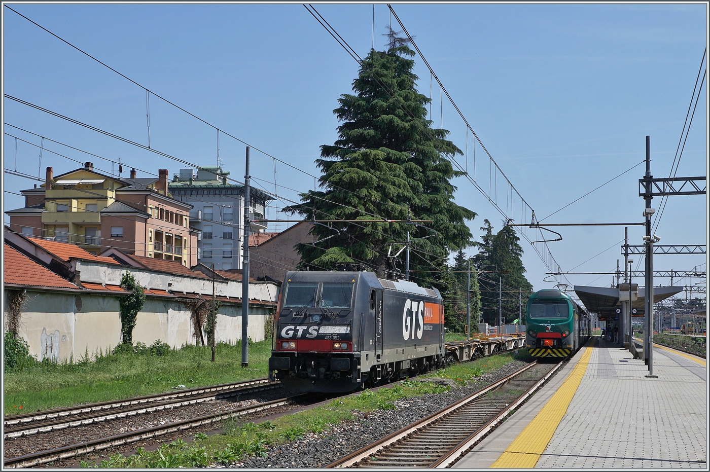 E-Lok 483 009, hat ihren Zug in der Abstellung des Bahnhofs von Verona abgehängt und durchfährt die Abstellung zum Gleiswechsel. 09.05.2025