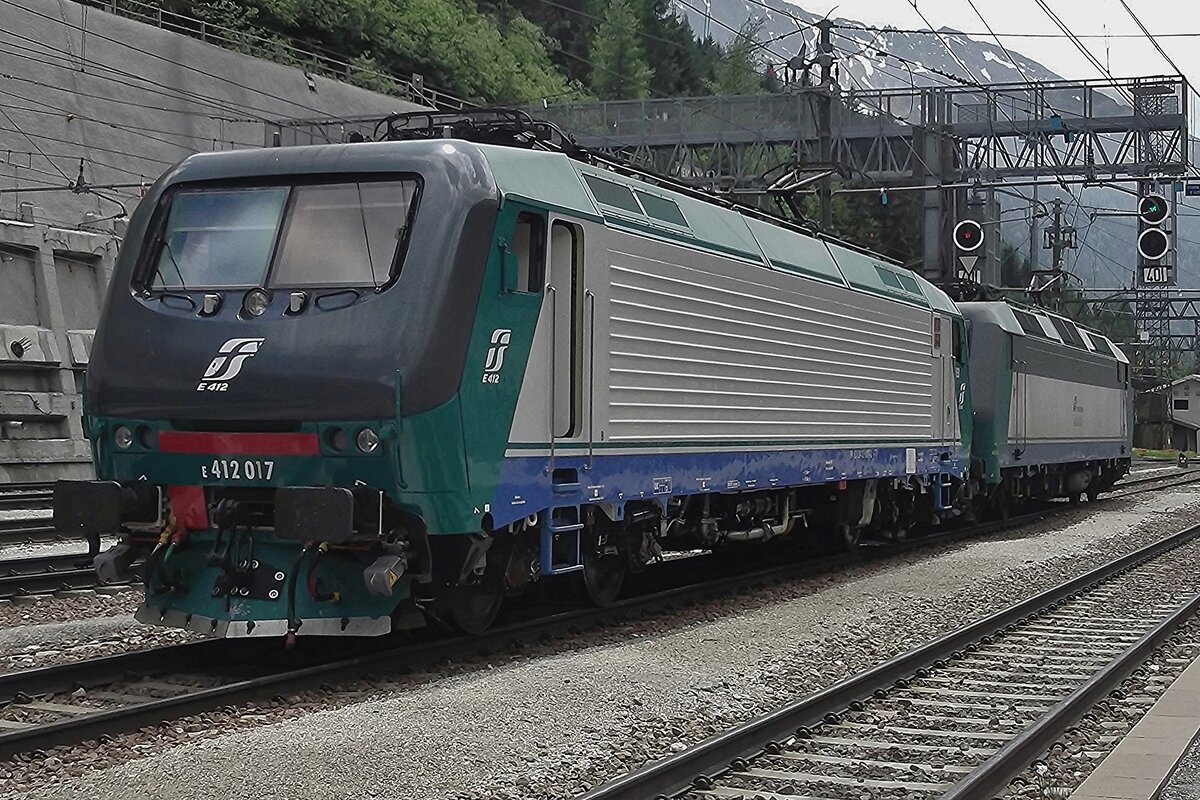 In Doppeltraktion fahren zwei Brennerloks (ex Trenitalia E.412) am 26.03.2022 als Lokzug vom Brenner hinab kommend durch den Bahnhof Gossensaß/Colle Isarco in Richtung Bozen. Nochmal einen lieben Gruß an den netten Lokführer zurück. Vorne die E412 005 (91 83 2412 005-7 I-MIR) und dahinter die E412 018 (91 83 0412 018-4 I-MIR), beide gehören heute zur Mercitalia Rail Srl., die aber auch eine 100%tige Tochter der Ferrovie dello Stato Italiane (FS, deutsch Italienische Staatseisenbahnen) ist. Sie betreibt heute die Güterverkehrssparte.