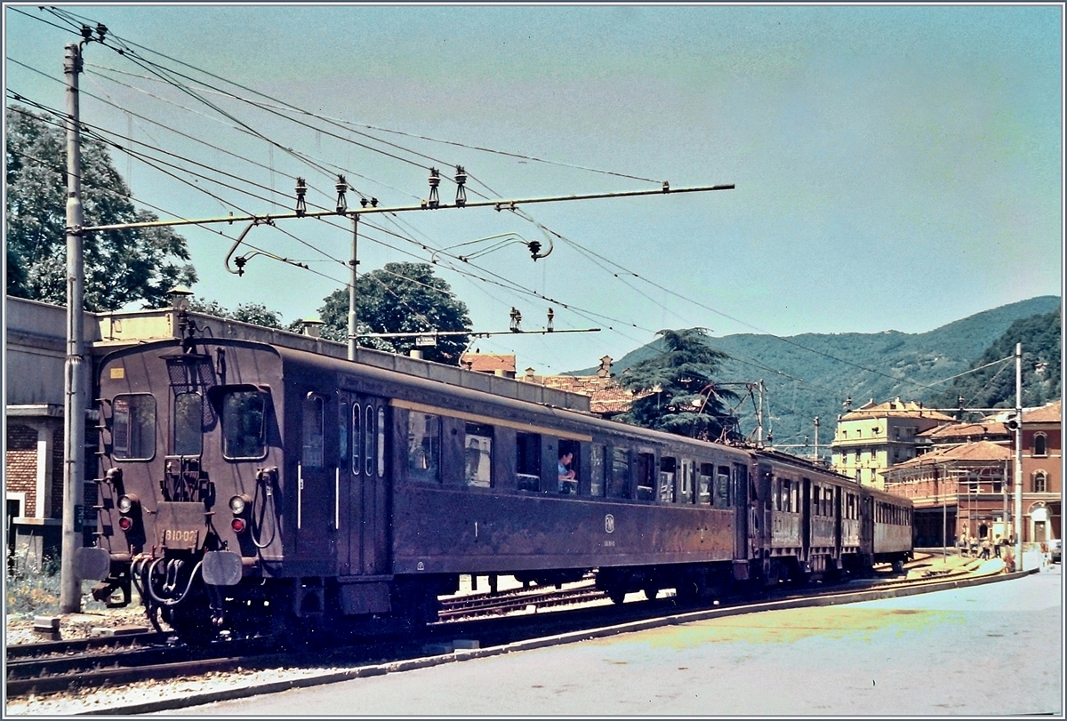 Ein damals typischer FNM Triebwagenzug mit Steuerwagen - Moterwagen und Steuerwagen verlässt die Station Como FNM.