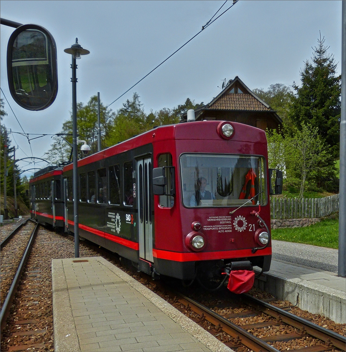 Triebzug 21 der Rittnerbahn, (ex Trognerbahn), nähert sich der Kreuzungsstelle Lichtenstern (Stella). 15.05.2019 (Hans)