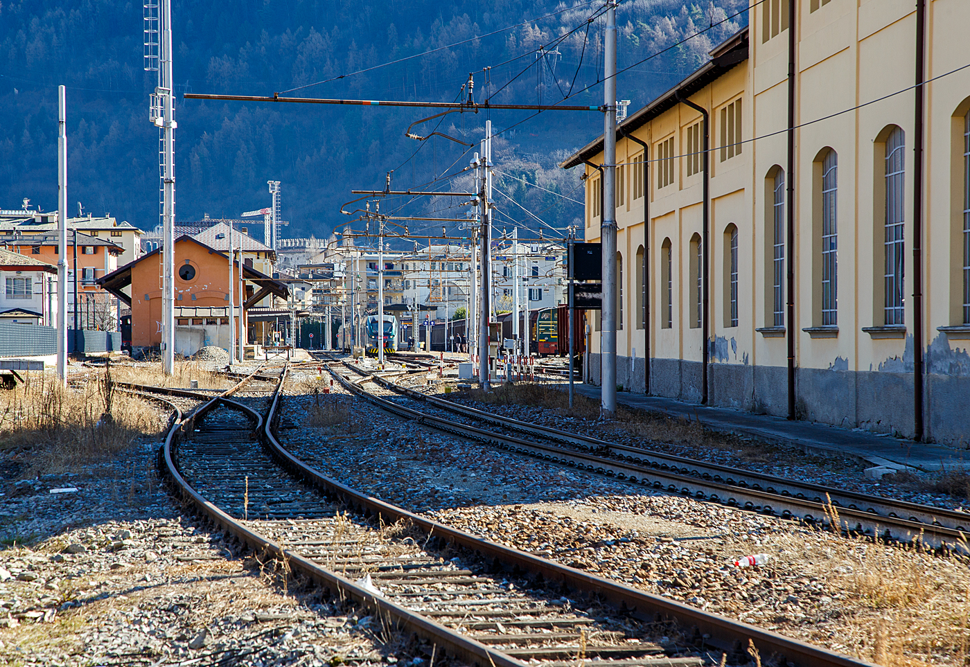 Ein FS Ale 803 wartet in Tirano auf die Abfahrt nach Sondrio. Leider sind die formschönen Triebzüge inzwischen nicht mehr in Betrieb.