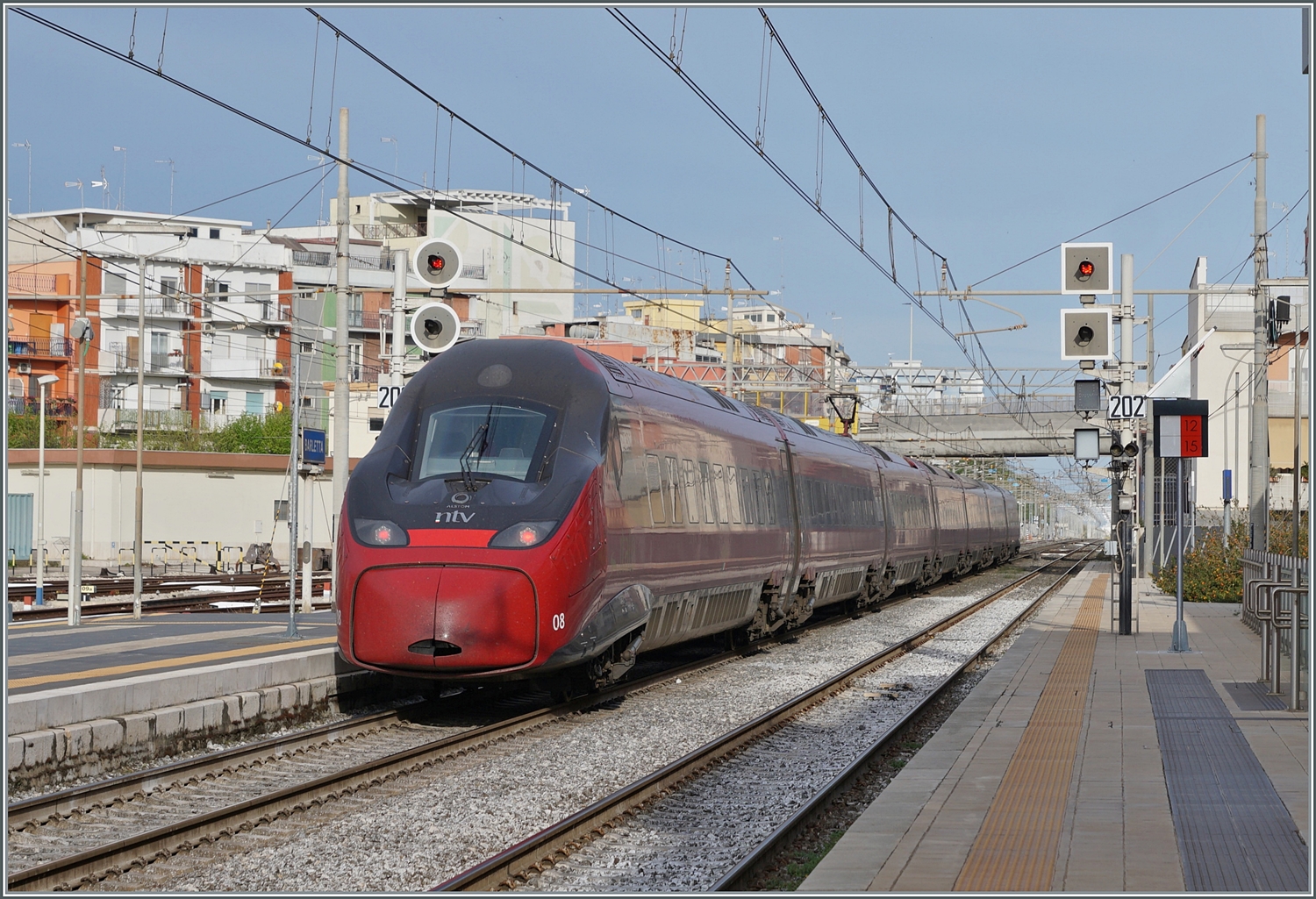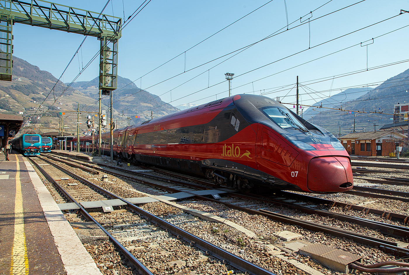 .italo EVO 12 Triebzug 93 83 4675 ..., verlässt am 16.05.2019 in den Bahnhof von Verona.