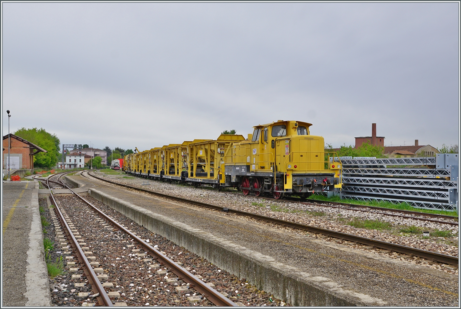 Eine mir nicht bekannte gelbe Diesellok 270020-6 der RFI (Rete Ferroviaria Italiana /FS Bereich Schienennetz und Eisenbahninfrastruktur) konnte ich am 20.06.2016 in Varzo aus dem EC heraus aufnehmen.