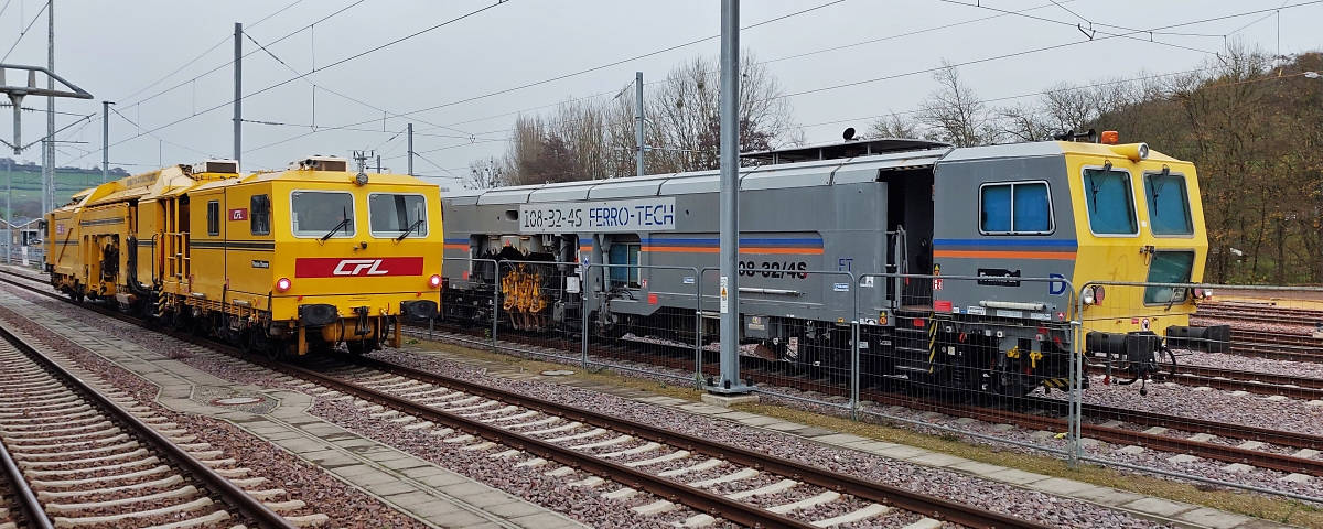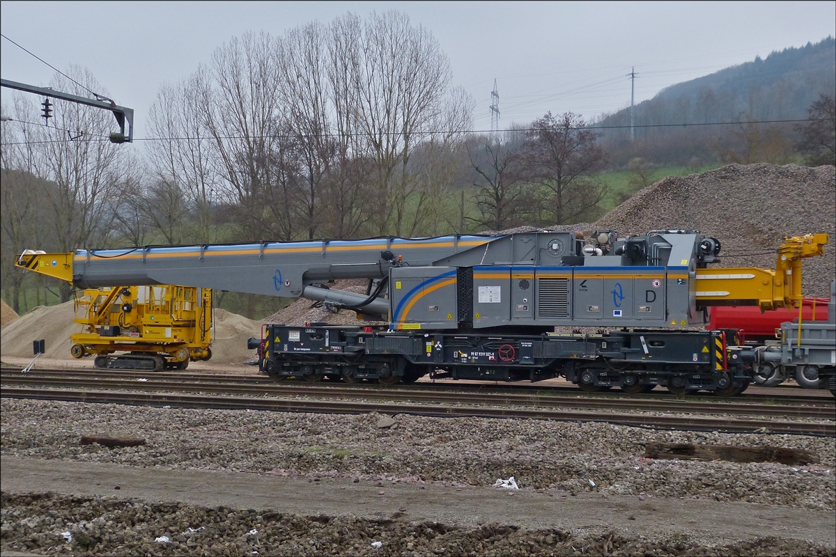 . Dieser Schutzwagen zu Gleisbaukran KRC 1200, Schweres Nebenfahrzeug (A-RTS 99 81 9377 004-2) auf welchem unter anderem der Hebearm des Gleiskranes abgestützt ist, war am 20.05.2016 im Bahnhof von Ettelbrück abgestellt.