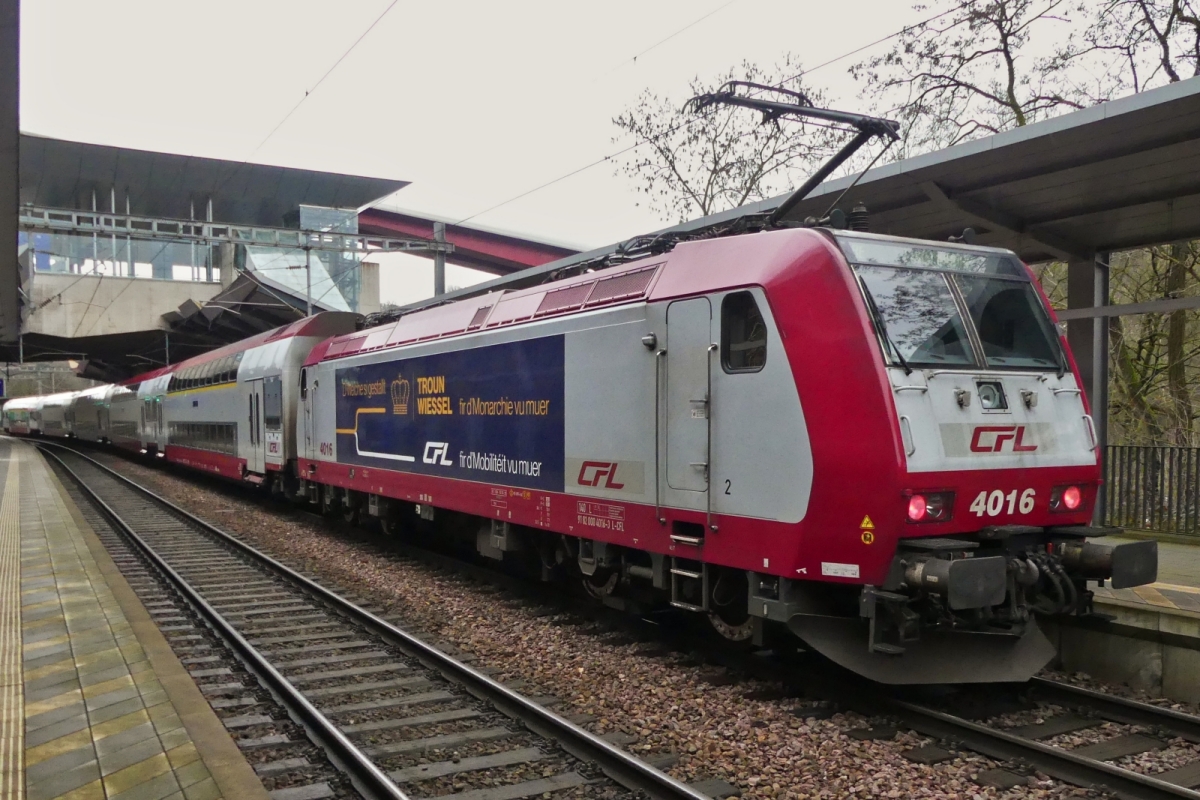Die CFL 4008 kommt aus Troisvierges in den Bahnhof von Clervaux eingefahren. Nach einem kurzen Halt bedient dieser Zug als RE 460 Troisvierges-Rodange die Strecke über Luxemburg Hauptbahnhof nach Rodange an der französischen Grenze. 08.02.2019 (Hans)