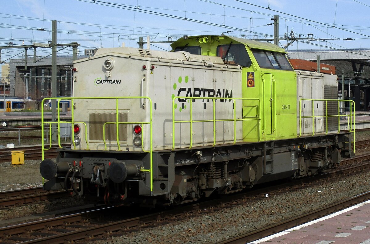 Solofahrt für CapTrain Benelux 203-101 durch Rotterdam Centraal am 26 März 2017.