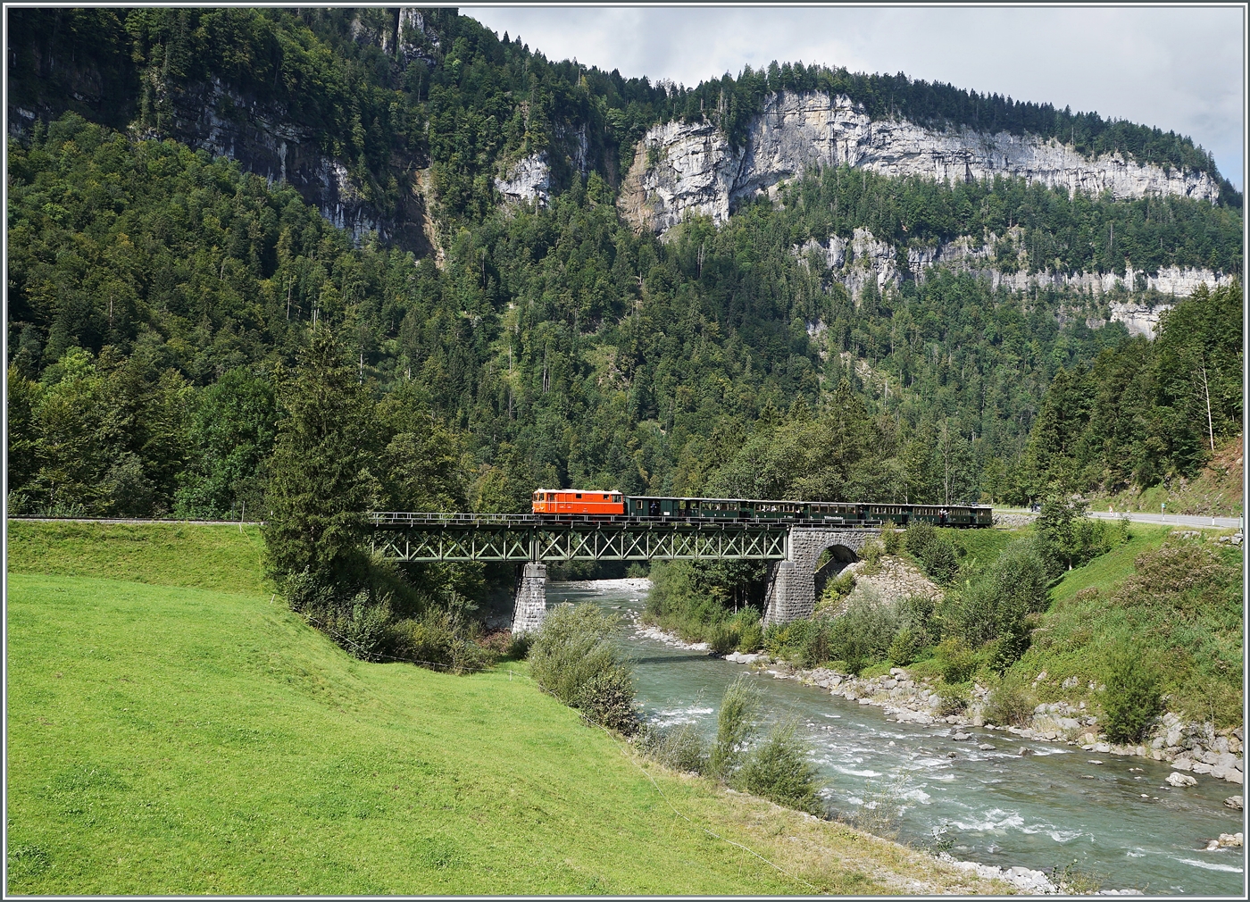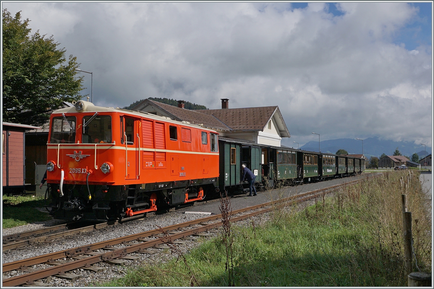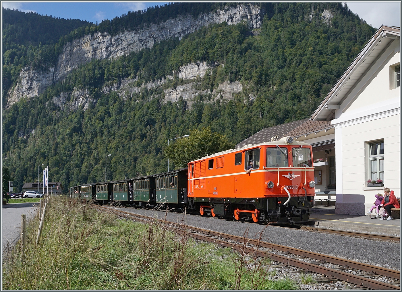 Die BWB Uh 102 übernimmt in Bezau drei weitere Wagen für ihren heutigen, ersten Zug nach Schwarzenburg.