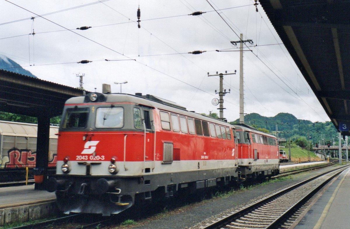 Am 29 Mai 2004 steht 2043 020 in Schwarzach Sankt-Veit und wartet mit eine Schwester auf neue Angaben.