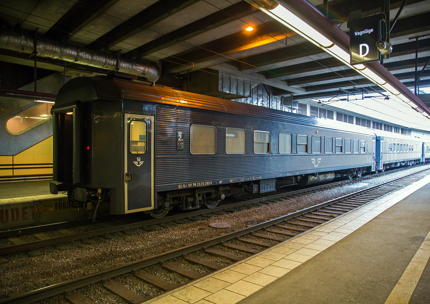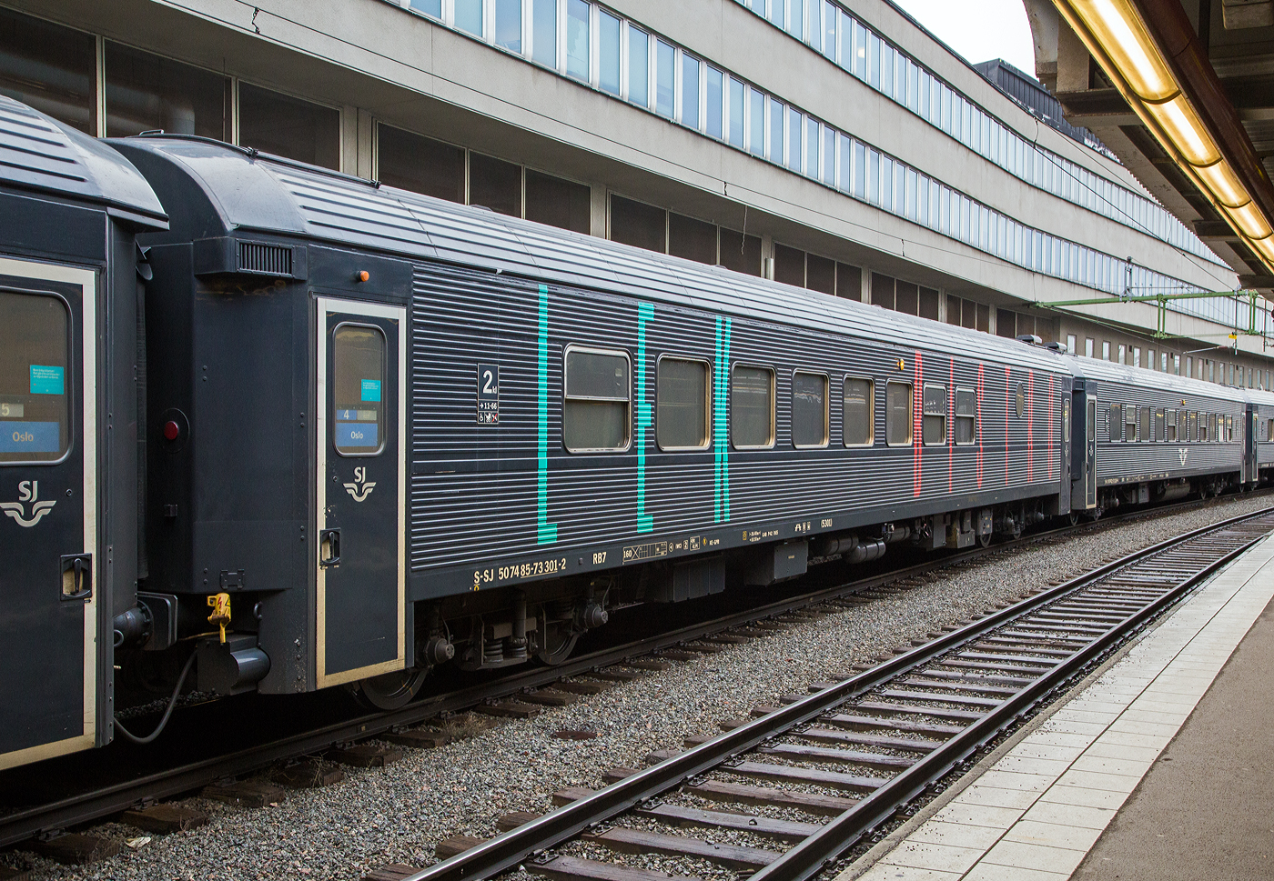 Die Reisezugwagen sind für 200 km/h zugelassene ehemalige DB UIC-X-Wagen (Schnellzugwagen). Die Wagen sind Eigentum von Snälltåget AB, sind aber in Österreich registriert (A-SNALL). Hier hinter der VECTRON ist der Wagen 11 der A-SNALL 61 81 22-90 064-9 Bmpz, dieser wurde 1979 von der Wagon Union (WU) in Berlin-Borsigwalde als D-DB 51 80 22-90 247-3 Bm 235 für die DB gebaut. Später ging er als B12 ICK-Reisezugwagen (50 84 22-37 991-9) an die NS und wurde 2013 an die Hector Rail nach Schweden verkauft, 2017 ging er an die Snälltåget.
