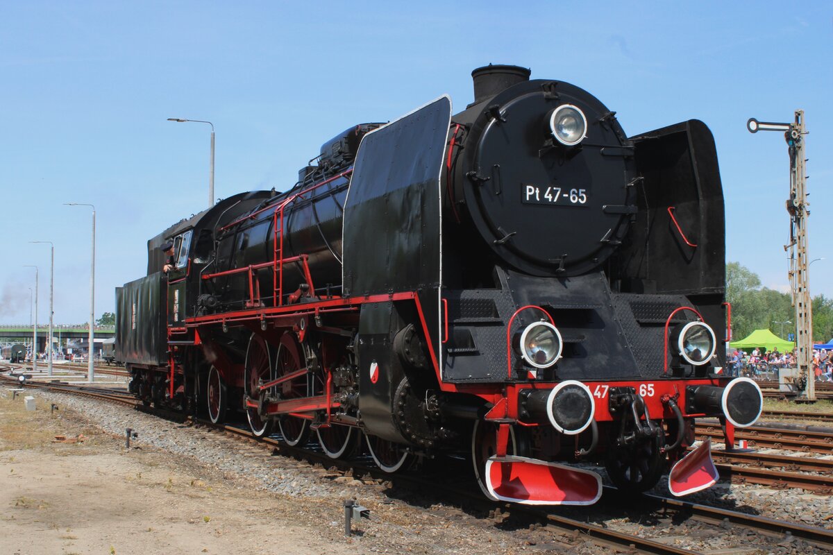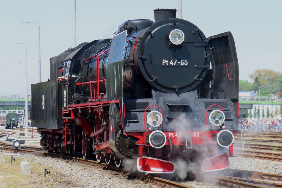 Pt47-65 töfft am 4 Mai 2024 in Wolsztyn während die Vorbereitungen der Dampflokparade.