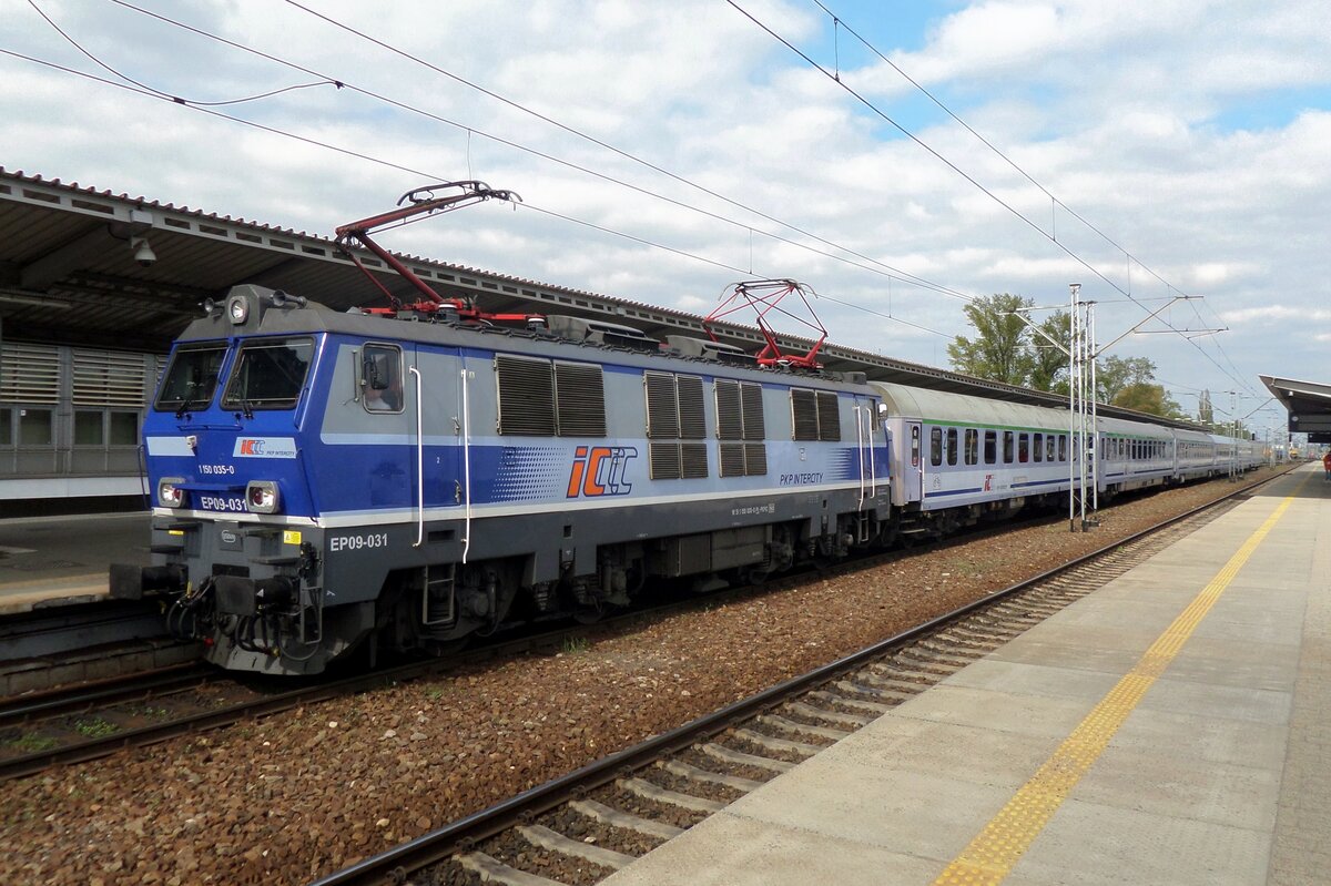Am 1 Mai 2016 steht PKPIC EP09-031 in Poznan GLowny -denn noch mit die beide verschiedene Stromabnehmer.