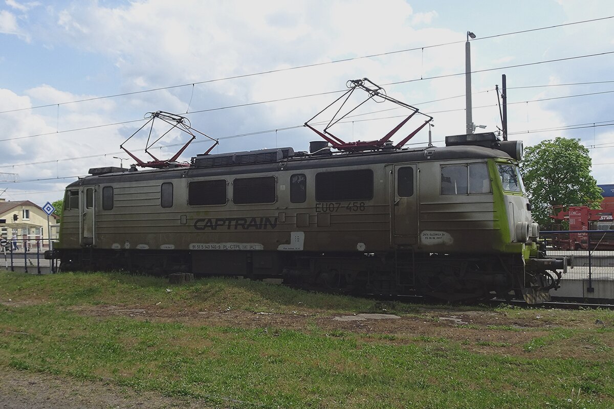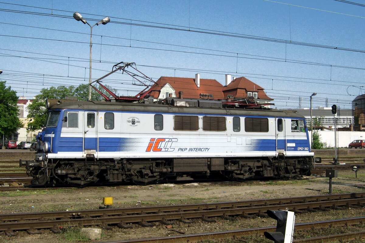 Starker Froschblick auf EP08-006 in Warszawa-Wschodnia am 2 Mai 2016 -vom Füsspfad unter der Ausgang des Bahnhofes gemacht.