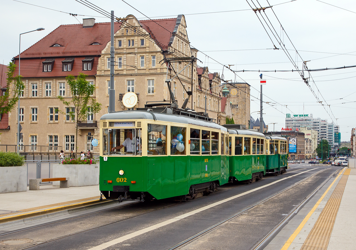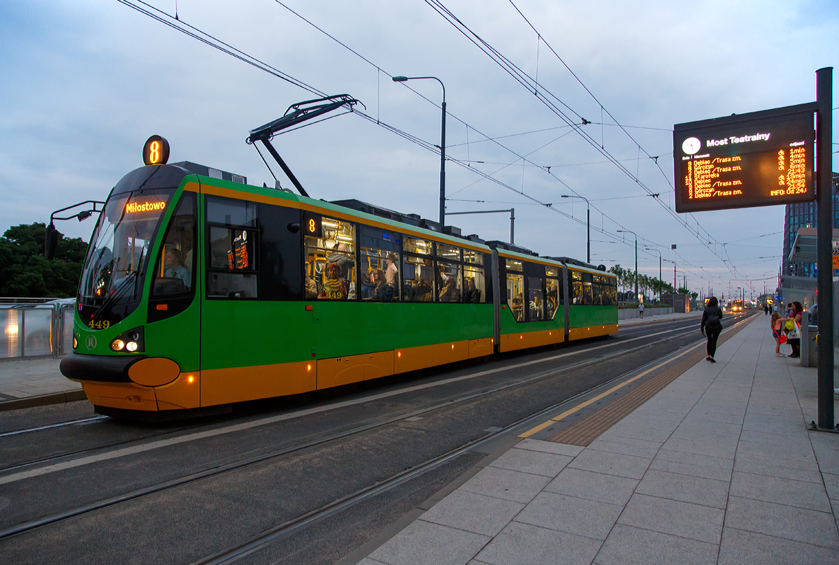 Straßenbahn Posen / Miejskie Przedsiębiorstwo Komunikacyjne w Poznaniu Sp. z o.o. (MPK Poznań Sp. z o.o.): Der fünfteiliger SIEMENS Combino MPK Triebwagen 503 (Baujahr 2003) am 25. Juni 2017, als Linie 9 nach DĘBIEC PKM, kurz vor der Haltestelle Niedziałkowskiego (Przemysłowa ) in Poznań/Polen.