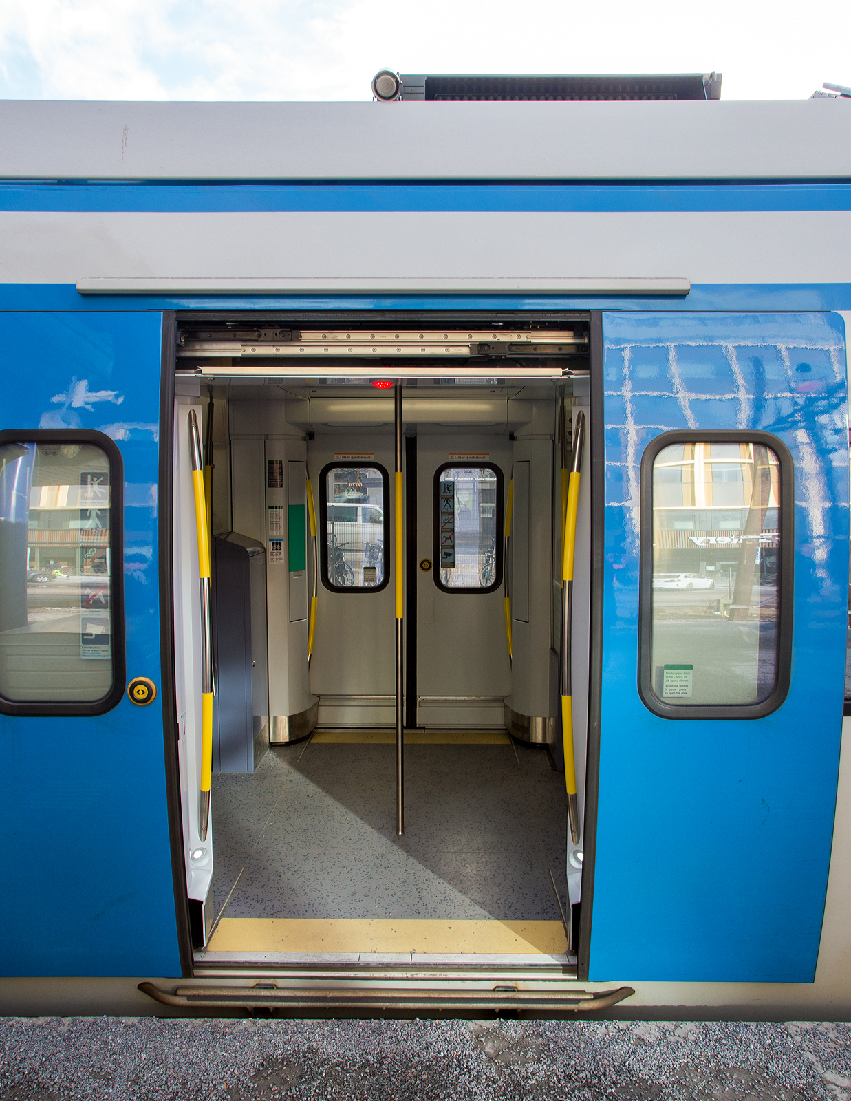 Ein SL X60-Vollzug somit zwei gekuppelte X60, sechsteilige Alstom Coradia Nordic der SL - Storstockholms Lokaltrafik, verlassen am 21 März 2019, als Linie J43x der Stockholms Pendeltåg (S-Bahn Stockholm), den Bahnhof Stockholm Central (Stockholm Hbf). Hier am Zugende der SL X60 6012 (94 74 4606 012-x S-SL).