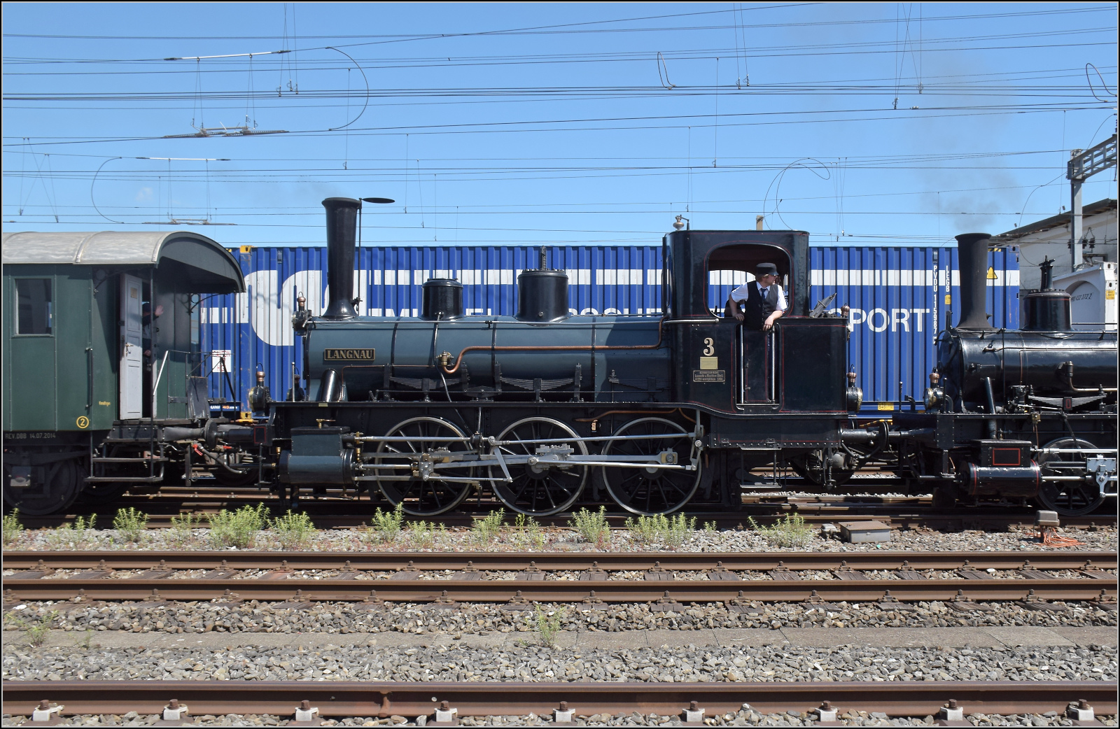 Vorne sind die jüngsten zweiachsigen Personwagen der Schweiz, deren Serie wider den Zeitgeist noch 1927-1929 von der SIG für die Sihltalbahn gebaut wurde. C 68 und C 69 sichtet man zumeist im Doppelpack. Hinten ist C 22 aus der Originalausstattung der Sihltahlbahn aus dem Jahr 1892 der in der Westschweiz und in Frankreich dem Recyclingkreislauf entkam.