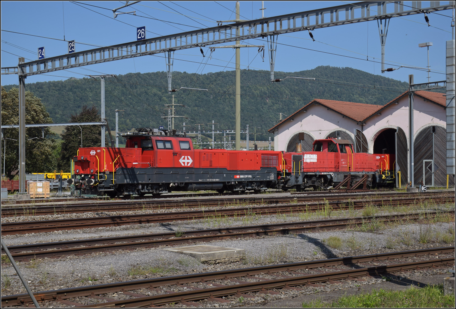 150 Jahre Schweizer Eisenbahn: Die E 2/2 N° 3 "Zephir" verlässt mit zwei RHB Wagen den Bahnsteige des Bahnhof von Delémont in Richtung "Festgelände" bei der Drehscheibe im östlichen Teil des Bahnhofs.