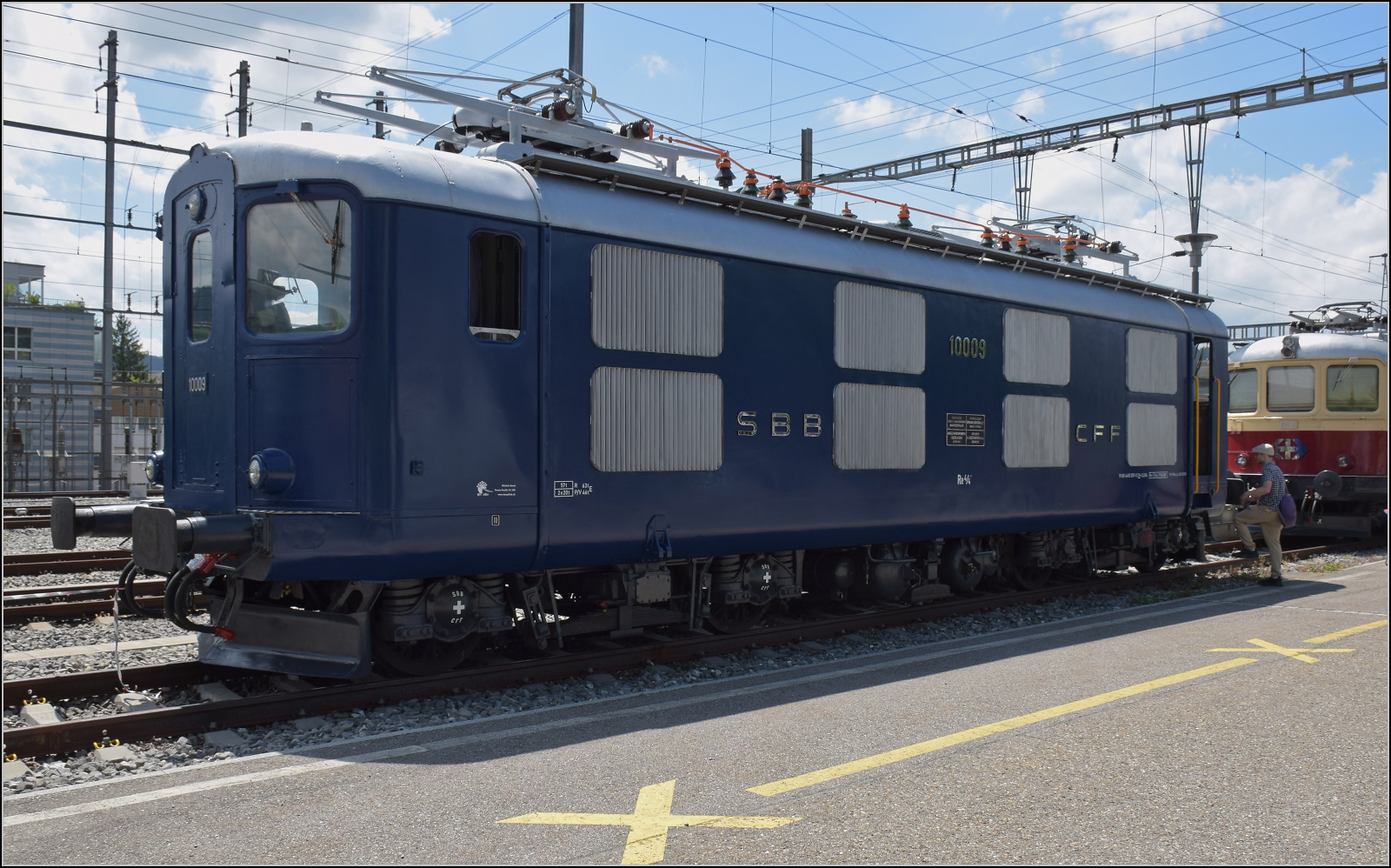 Re 4/4 I 10009 ist inzwischen sauber aufgearbeitet und bekam den originalen blauen Anstrich vom Verein Pacific 01 202 spendiert. Das macht definitiv was her und man wundert sich, warum in der Schweiz die Schnellzugloks später doch in tannengrün lackiert wurden. Konolfingen, Mai 2025. Olli