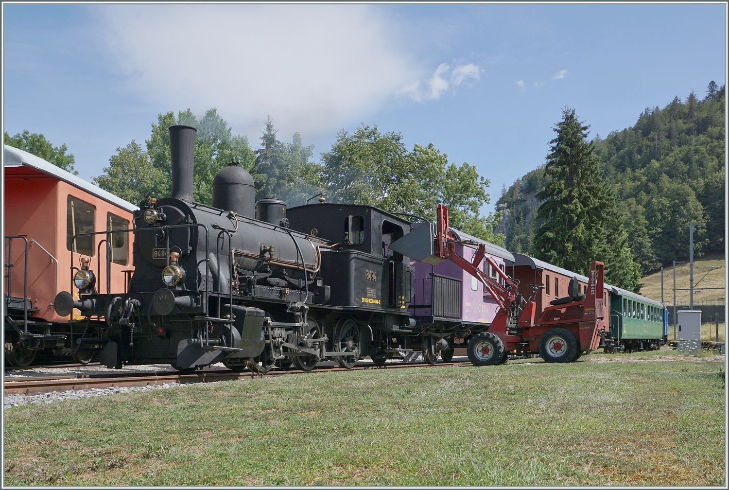 Ein Blick über das Dépôt-Gelände der CTVJ (Compagnie du Train à Vapeur de la Vallée de Joux) mit dem für den Nachmittgag vorgesehen Dampfzug.