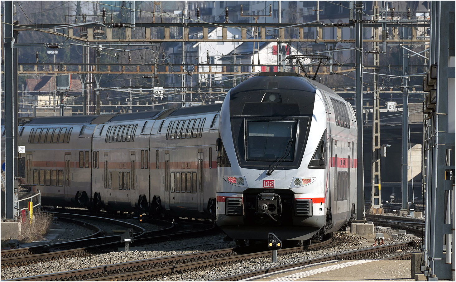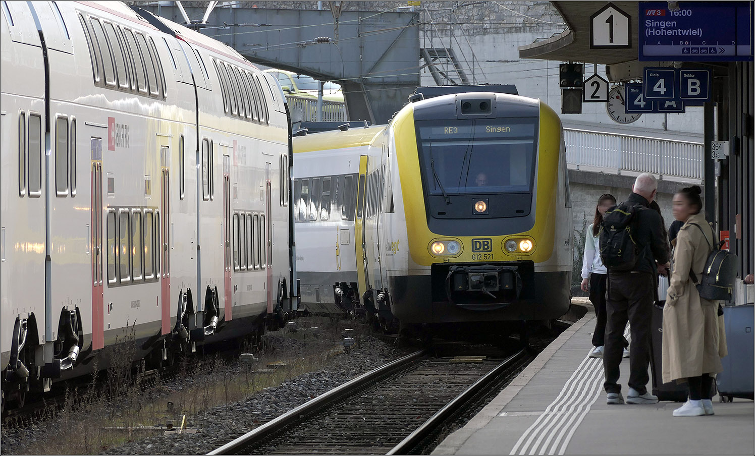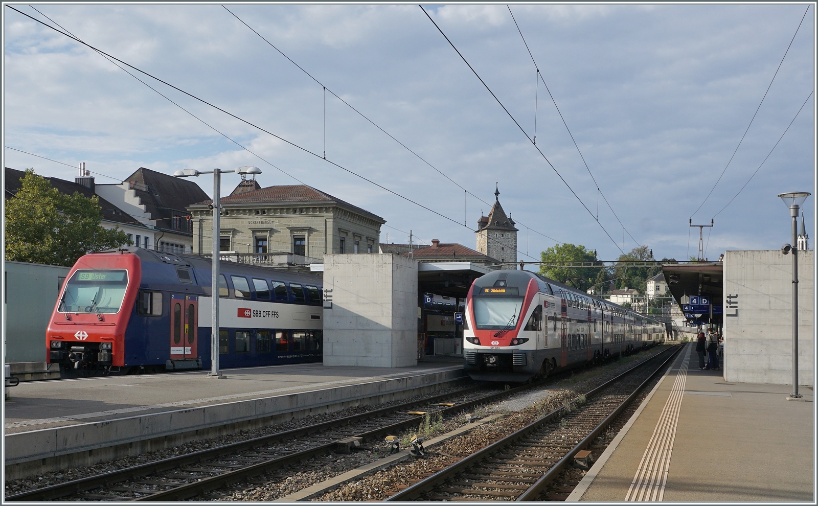 Der DB 612 636 ist als IRE auf dem Weg nach Singen und der SBB RABE 511 104 ald IR nach Zürich - oder bunte internationale Eisenbahn in Schaffhausen.