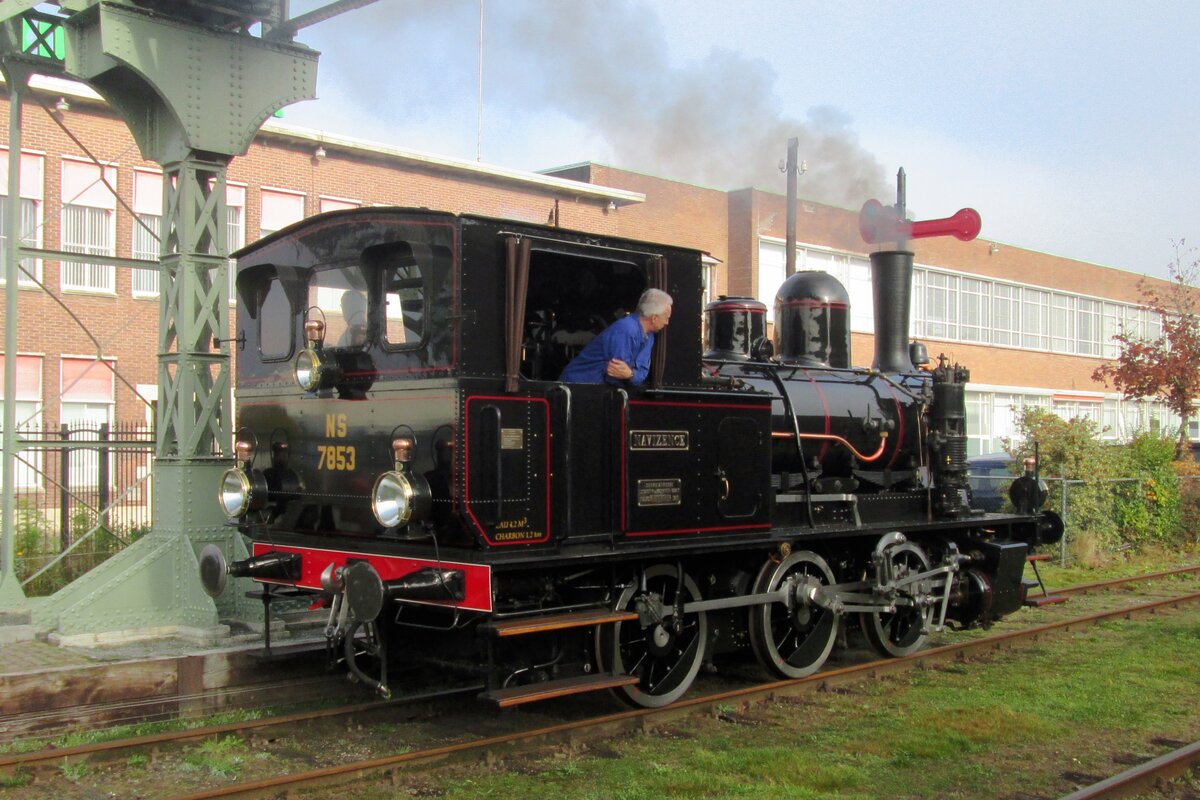 Museumbuurtsporweg MBS 7853 lauft am 23 Oktober 2016 um in Haaksbergen. In 1945 kauften die Niederländische Staatseisenbahnen zwei ex-JS, ex-SBB Tigerli (8438 und 8439). In 1948 wurden die beide Dampfloks ausgemüstert. In 1910 wurde ein Tigerli für Alusuisse gebaut und in 1996 von die MBS gekauft. Weil es kein Originallok war wurde die jetzt Niederländische Tigerli (auch Navizence genannt) als 7853 eingereiht und ist heute betriebsfähig, wie sie hier in Haaksbergen unter Beweis stellte.